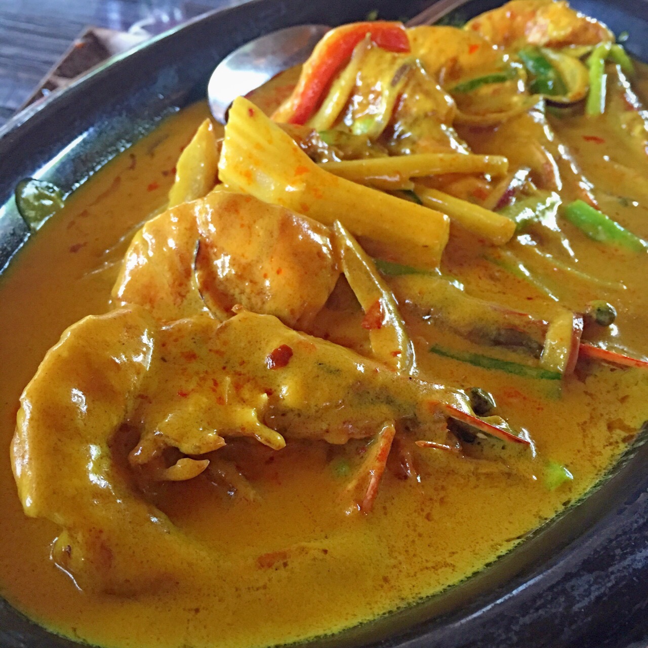 这里的咖喱味道很不错,而且也很下饭,老虎虾个头大,弹性足。环境就是简式的布局风格