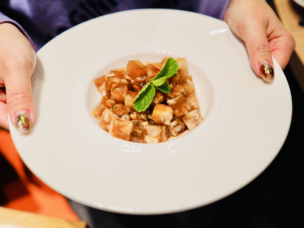 最近新商场都赶着圣诞前夕开出来让大家节日有新地方去啊,我渡个江就到了,八佰伴附近,真的很有腔调。九号线无缝链接[强] 最早认识莆田实在虹桥的那家,没想到开店速度还是hin快,现在浦东浦西都有了,连锁店海真不少,吃的是我喜欢的闽南菜系。一直看到有说是新加坡米其林一星,反正好吃就会多多光顾。 环境小清新,带有莆田海域的蓝色,大海么自然出产的海鲜就多。比如他家的头水紫菜做的虾苗拌紫菜,紫菜一丝丝的很清爽,调味酸甜开胃起到承上启下的作用,加上虾米吊鲜,每次必点。 饮料养生系,冬瓜薏米水祛湿、自制滋养玉米汁浓醇。还有特色武夷山头春大红袍,杯子里面加了茶斗,香气浓郁。 九转小肠 颜色一看就很新鲜,没有过多的着色,洗得很干净,没有膻味,吃起来富有弹性又带有嚼劲儿,鲜咸味,当中得一圈油脂恰到好处。 百秒黄花鱼,现做的,只有葱姜调味,吃到的就是原味,百秒出锅,热气腾腾,用筷子一夹,肉质不散,很鲜嫩,腹部依旧保持金黄色,吃完鱼喝口汤,舒服。 椒盐猪手片,可以按个算。大补胶原的好东东。皮是焦脆深褐色,吃口脆,里面就是胶质软糯,跟表皮的香脆正好互补,口感交错起来很美味,个头也非常大,吃上1只很满足,吃2只可以扶墙出。 莆田卤面,莆田享有“卤面之城”美誉,面控必须来碗面食,里面混合了瘦肉、香菇,虾干,干贝,牡蛎等,鲜得掉眉,面属于烂糊面那种,特别容易消化,我就好这口。 肉松茄子,金灿灿的一片,肉松也炒过的,酥香。茄子表皮油炸过,也是同样的又酥又香。让我吃不出茄子味道的茄子就是好茄子,都可以当零食来吃。 甜品很有特色,桂花陈皮炖雪梨,去燥润肺。绿豆红团是糯米制品,莆田传统食品,这个带馅的是没有去皮的绿豆,甜度适中,不错吃。 [服务] 进门的莆田欢迎词很有意思[呲牙]