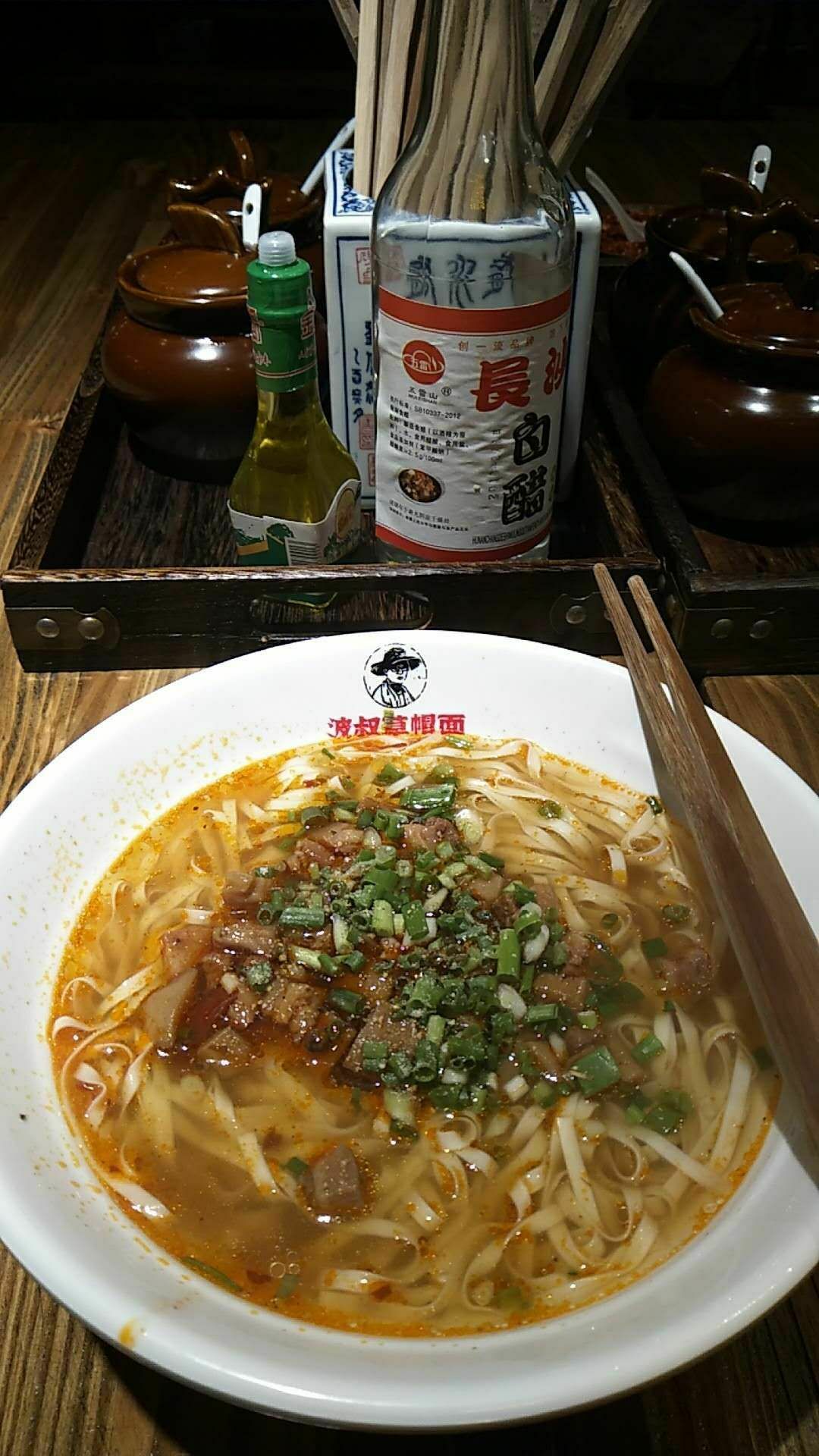 现在的网络时代还真不错,不知道吃什么上网一搜就知道了,波叔草帽面还上过电视台在网上评价也不错就直接选择这家店了,来到店里一看还真没失望,装修有特色,古香古色的木头房,感觉一下回到了年少时代,品种很多还有配菜,口味也很符合大众化,服务态度热情周到,值得推荐