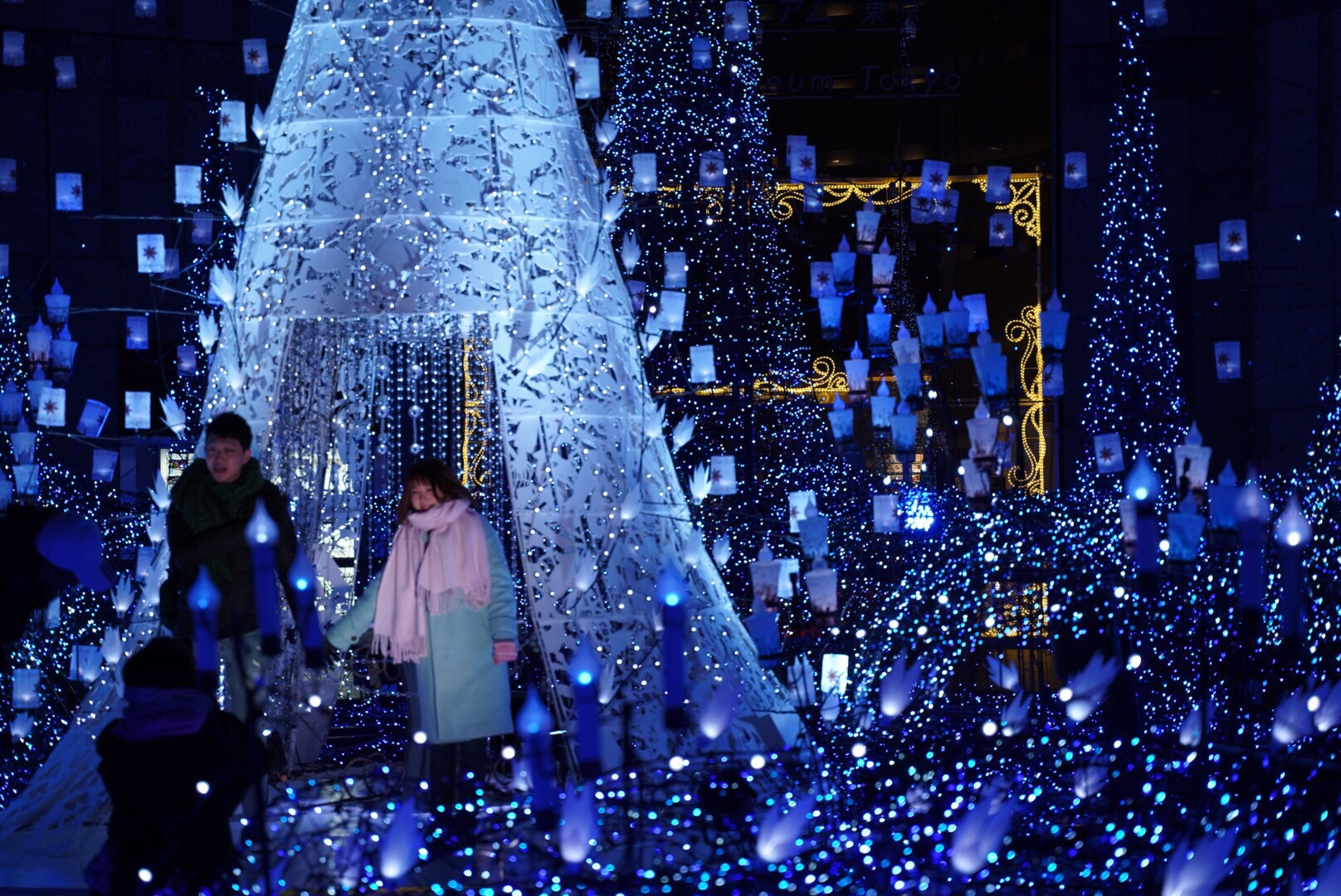 #跨年好去处#限时的迪士尼灯光秀,赶着31号11点前到达了汐留的灯光秀初,虽然来不及排队近距离拍摄玫瑰。但是在外围的拍摄效果也非常不错呢。