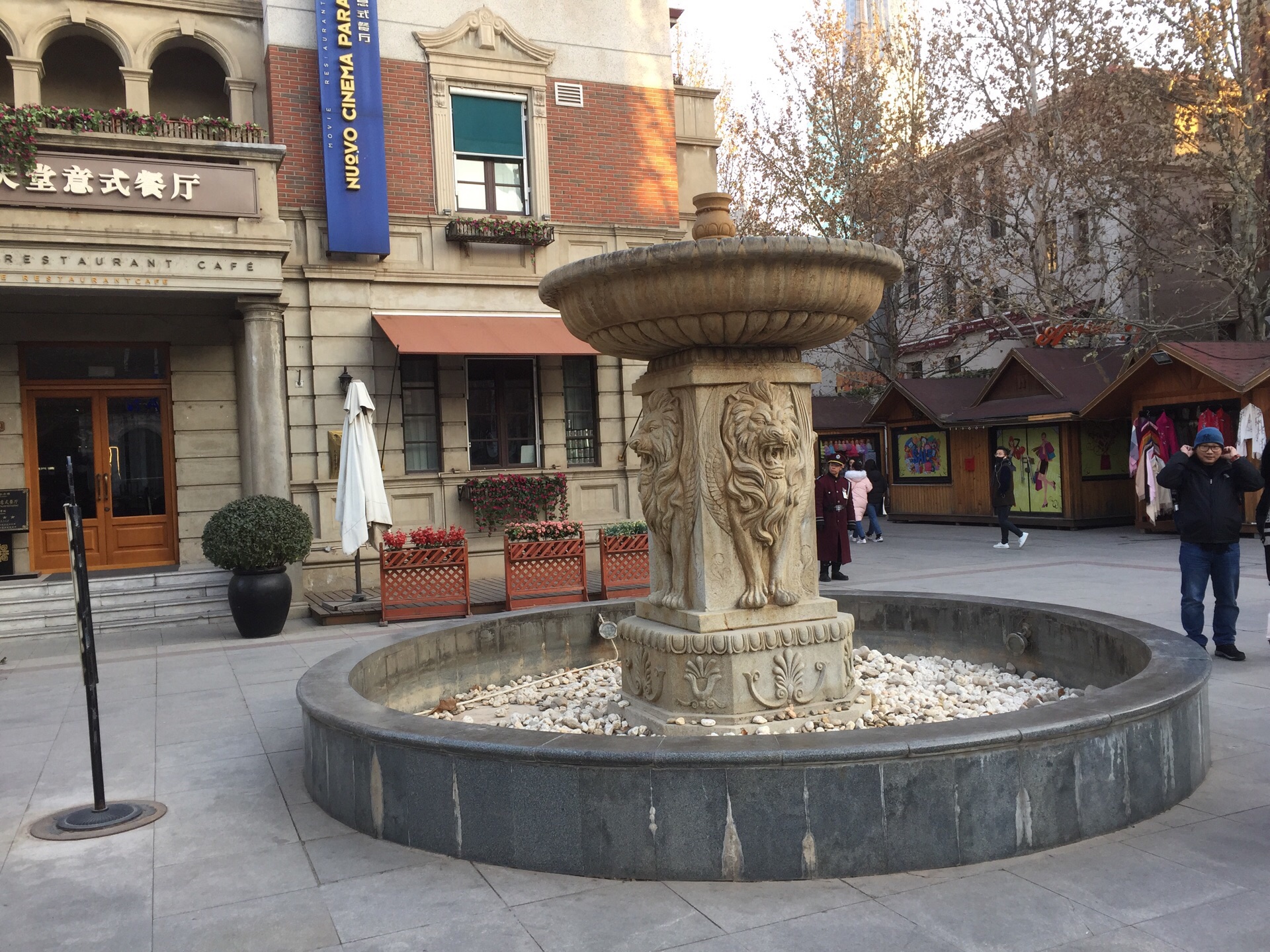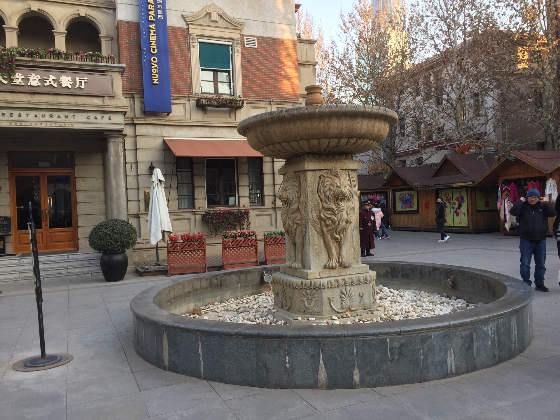威尼斯广场是意大利风情的内的一个人小型广场,很小的地方, 中间有个喷水池威尼斯广场是意大利风情的内的一个人小型广场,很小的地方, 中间有个喷水池。但天气太冷,没有喷水,附近都是餐厅,个人感觉没有什么特别。