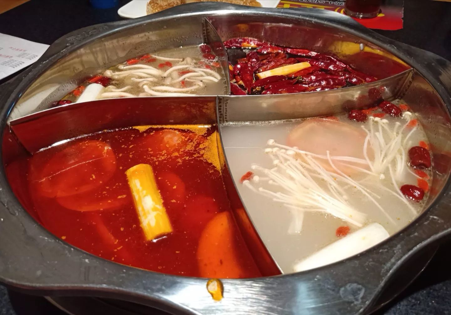 四格火锅真的很好吃,菌菇,番茄,大骨,麻辣,汤汁浓郁,下料十足四格火锅真的很好吃,菌菇,番茄,大骨,麻辣,汤汁浓郁,下料十足。羊肉卷很新鲜,下锅一点都不散,还有粉丝,小面,土豆都很不错,菜品都挺新鲜的,自助小料齐全,酒水饮料选择也挺多的。