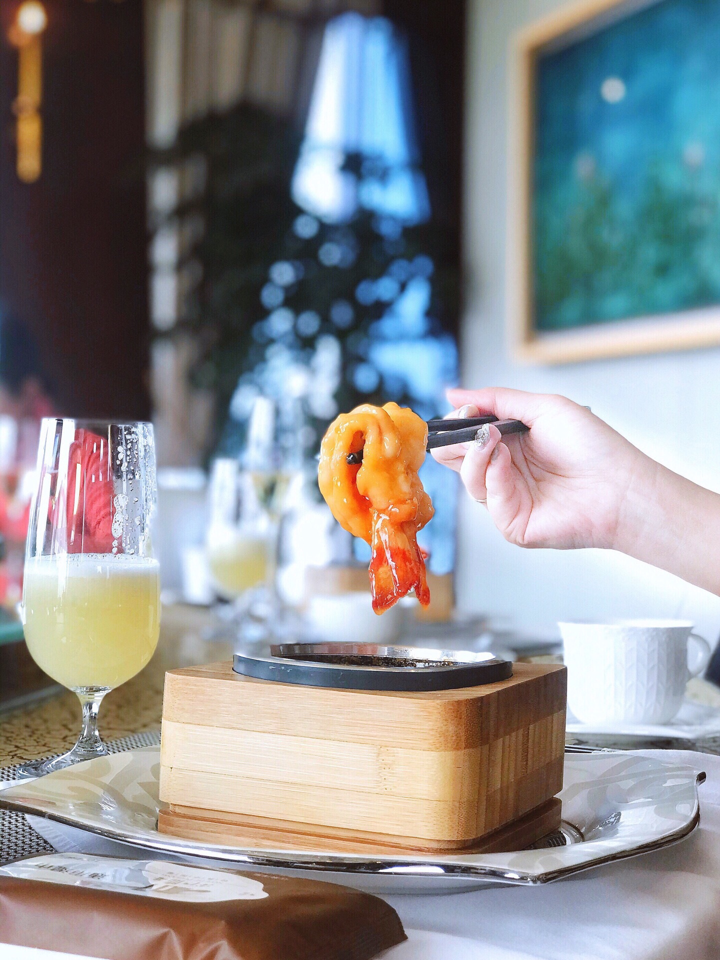 私密性很好 服务也是一流 黑松露岩米煮老虎虾 我最喜欢吃的就是虾了 虎虾的个头真的好大 上来的...