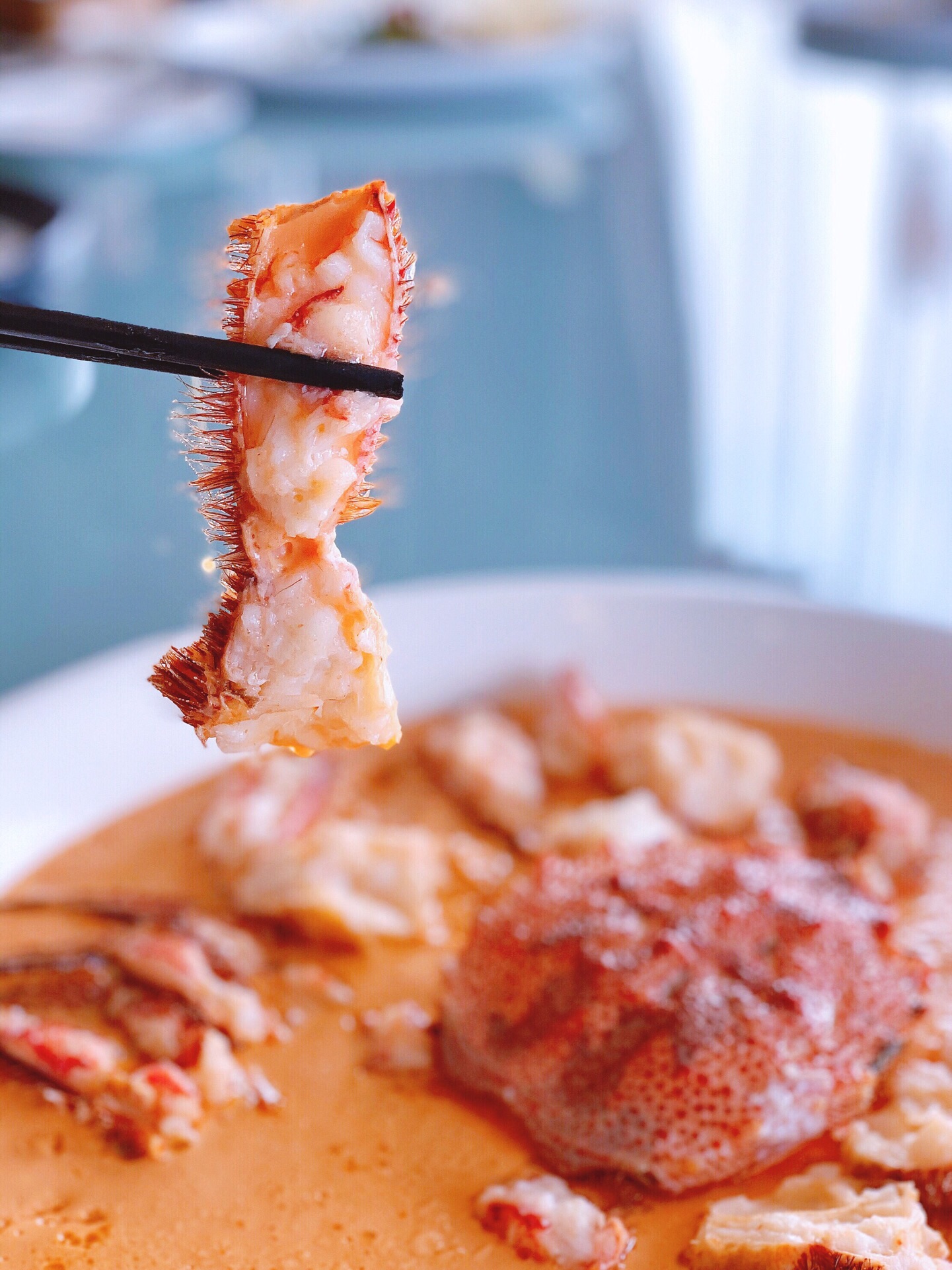在黄浦江边用餐是一种怎样的体验 浦江6号完美演绎了一场视觉与味觉的双重盛宴 现在人们吃饭已经不再只关注于它的味道了 环境也是极其重要的 浦江六号用餐环境超棒 全都是包间 私密性很好 服务也是一流 黑松露岩米煮老虎虾 我最喜欢吃的就是虾了 虎虾的个头真的好大 上来的时候是一盅盅的 感觉虾已经撑满了整个器皿 肉质鲜嫩Q弹 下面铺了很多五谷杂粮 摆盘精美 看着就非常健康好吃 招牌酒香活鲥鱼 第一次吃到活的鲥鱼 里面用的是50年的花雕一起蒸的 鲜活鲥鱼入口的感觉就是不一样 味道更鲜 口感更嫩 我平时真的不太喜欢吃鱼 但是他们家的这个鲥鱼 真的超棒 鸡油花雕蒸红毛蟹 蟹也是每次点单必不可少的 他们家的红毛蟹做法挺特别的 用花雕 鸡油和蛋一起蒸 使得原本就鲜味十足的蟹吃上去更加的鲜美 蟹脚都是事先全部处理过的 食用起来非常的方便 慢火东坡小牛肉 摆盘造型美轮美奂 牛肉口感鲜嫩多汁 每块牛肉的个头都很大 吃的出 这个牛肉品种应该很不错 棒棒