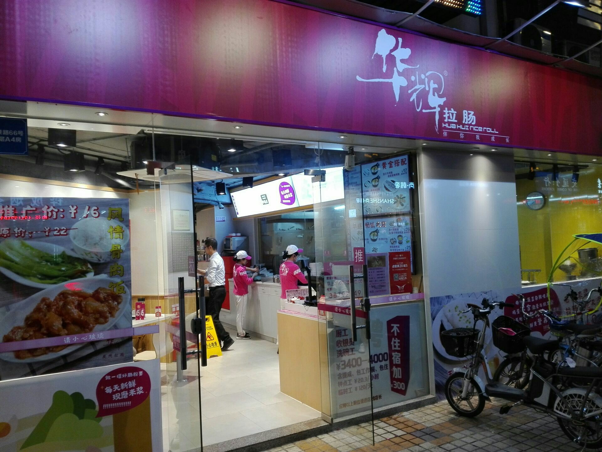这家“华辉拉肠”离家不远,有时候懒得做饭,就在这里解决吃饭了,前段时间搞促销推出了一个套餐,包括一碟“香菇牛肉肠”,一碟“鸡蛋肠粉”,还有一碗热辣辣的“生滚猪肉粥”,真系非常超值!肠粉一碟都有三条,分量很足,味道也不错,不愧专做肠粉的“拉肠专门店”;“生滚猪肉粥”煲得好绵,猪肉大块,真材实料好味道!店内人气爆棚,冷气不够,吃得满头大汗,建议商家改进环境,因为食粥、食拉肠都是滚热辣才好吃,所以空调不好就吃得不爽,个个都大汗淋漓,有点狼狈~