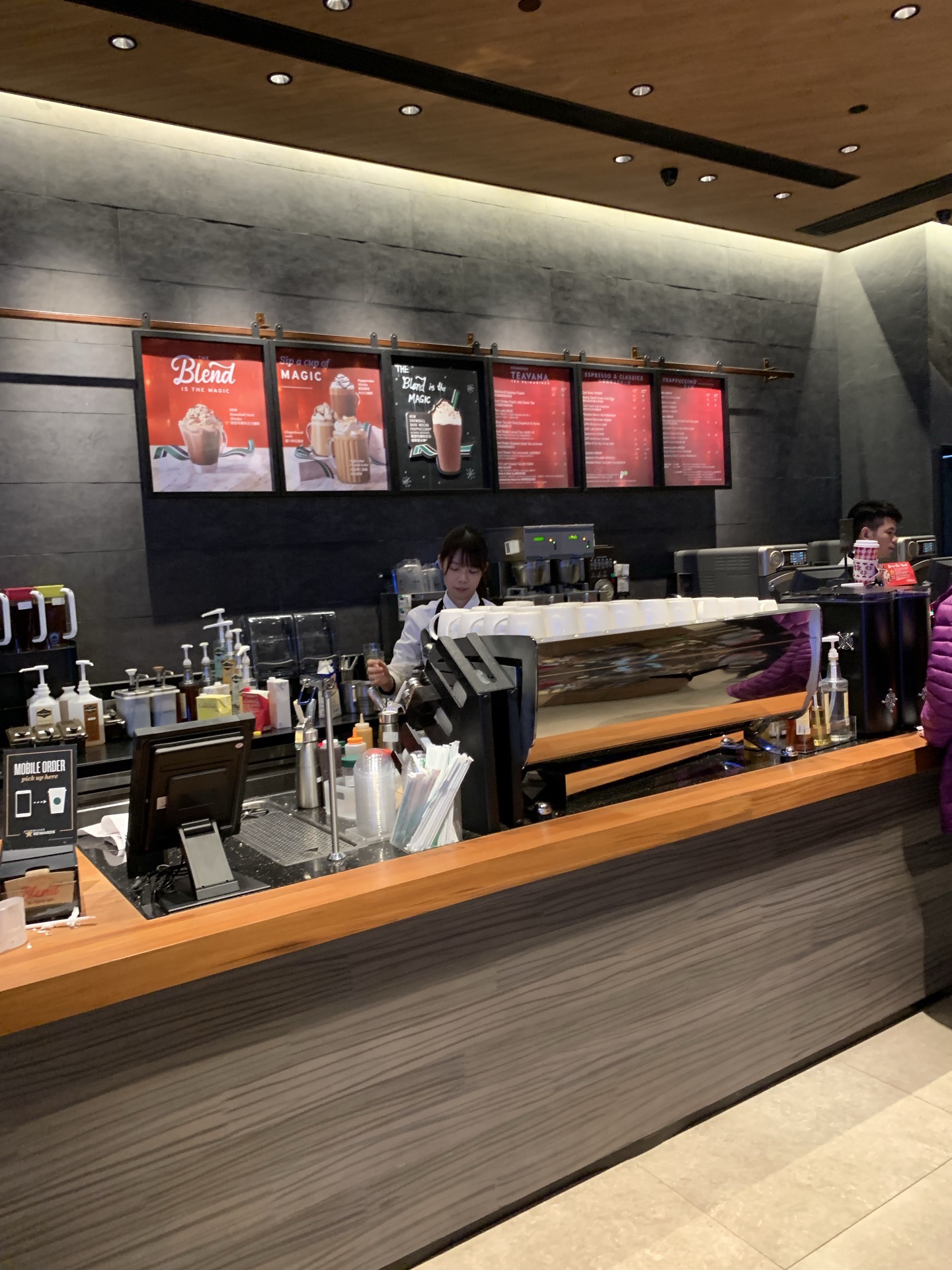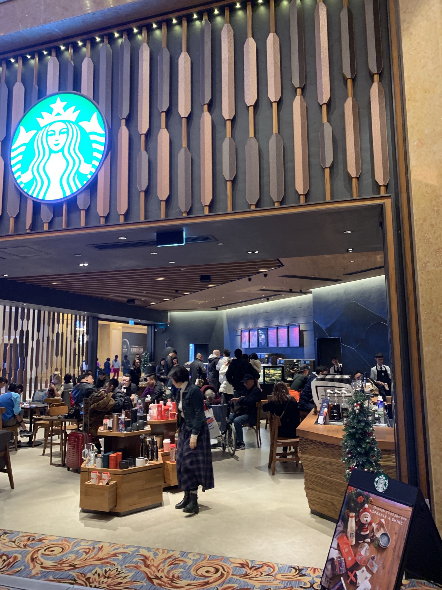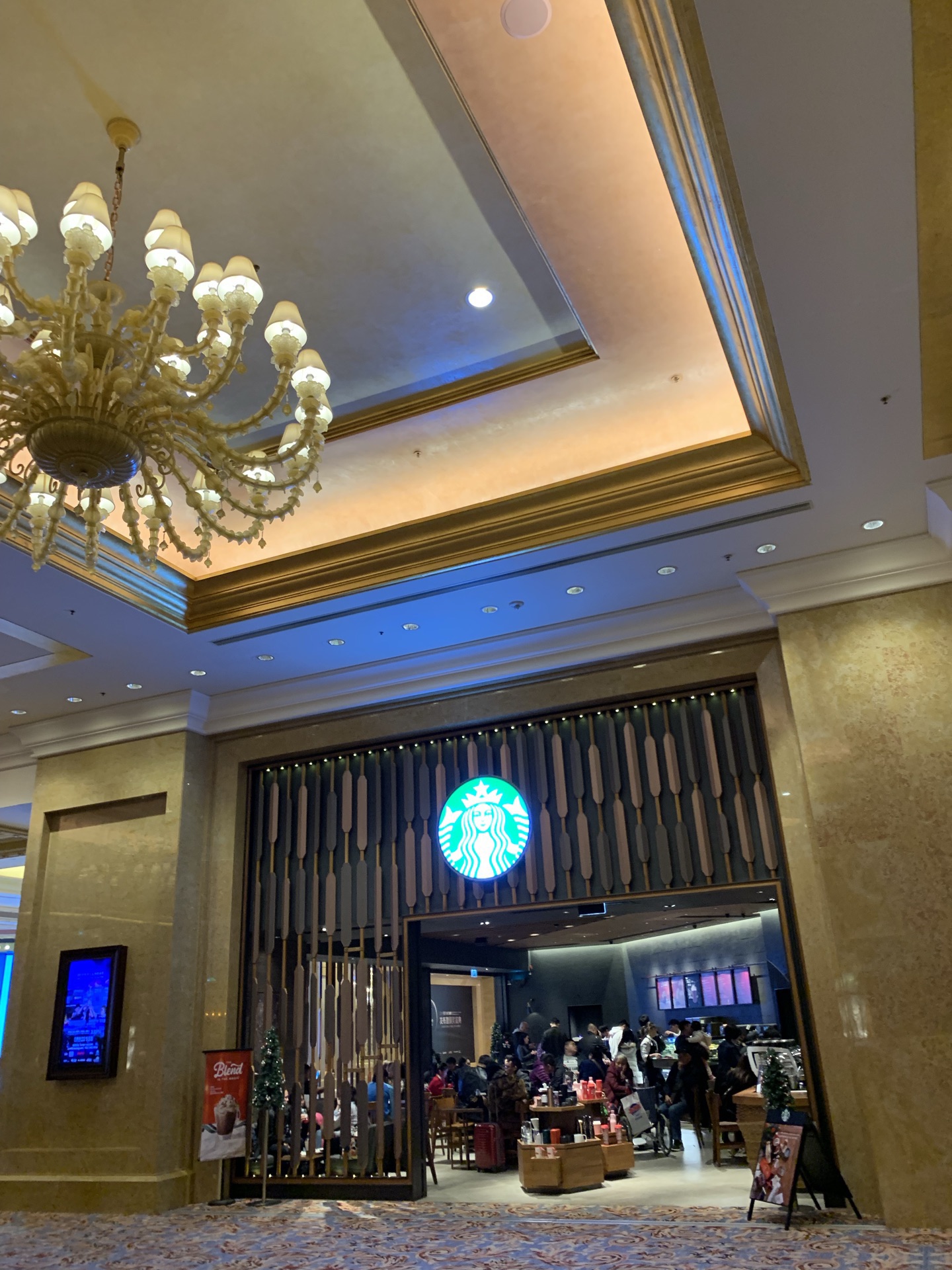 在威尼斯人酒店一楼星巴克喝过几次咖啡。就在帝王点心旁边,对面是家酒吧。这家星巴客人流量蛮大的。我去时还没座位。店员操作很职业熟练。我点了该店推荐的特浓朱古力摩卡,味道似乎有点特别,朱古力特浓,但依然感觉到咖啡的香味,有较强的回味。此外还喝过手冲卡布奇诺,也不错的。