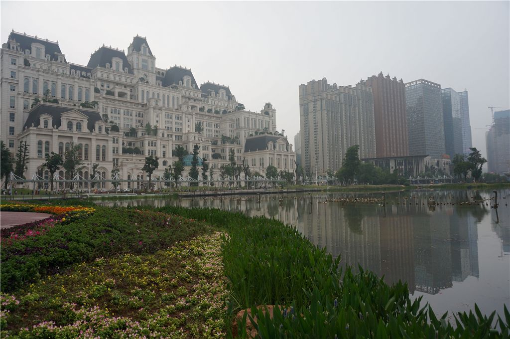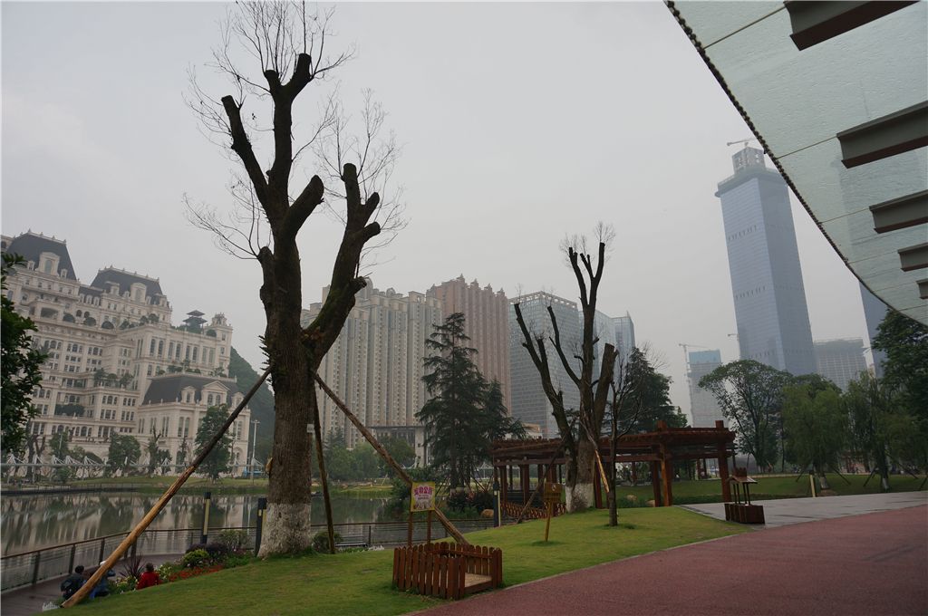 紧靠花果园湿地公园滨水广场,虽然绿化面积没有水域面积那么大,但绿草和繁华点缀其间,十分漂亮