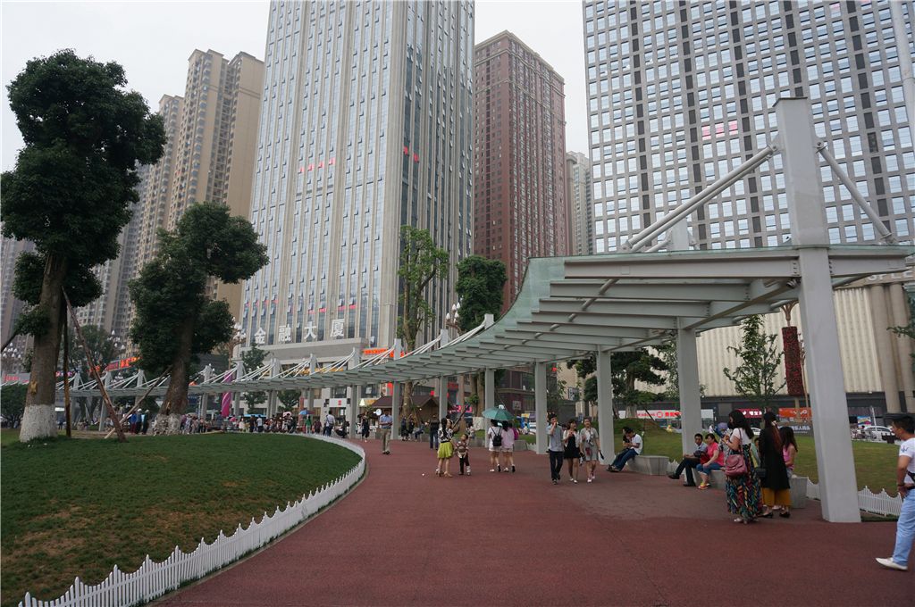 紧靠花果园湿地公园滨水广场,虽然绿化面积没有水域面积那么大,但绿草和繁华点缀其间,十分漂亮。往各郊区景点如天河潭、青岩、花溪等线路的公交总站,在阳光草坪旁沿路排开,因此从花果园购物中心步行过来会顺道经过,并能欣赏到湿地对岸气势恢宏的“白宫”建筑,感叹贵阳市近年来的发展确实非常块。