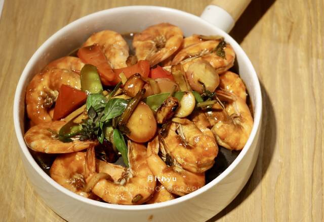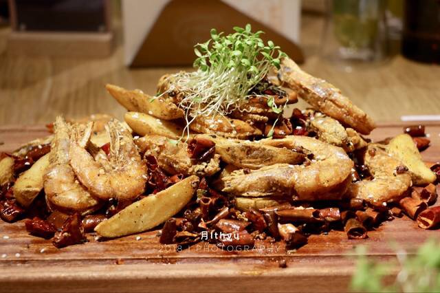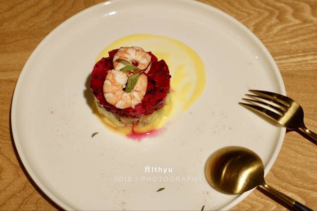 壹盤蝦,演绎着虾的一系列美味,用一个浅盘盛装一片海洋,带来不一样的虾味创意料理,有着台式、泰式、日式等……满足对虾料理的各种需求 壹盤蝦料理位于厦门的国贸金融中心美岁城四楼,入门的大虾LOGO非常有喜感,让人一眼看过去就知道是做虾料理的。环境更是让人备感温馨,暖暖的黄光,四人的座位,桌上置放的装饰物,每一处细节都能看出用心。 鲜果大虾沙拉,以水果铺底,上面置放着剥好的大虾,不论在摆盘还是色泽上,都非常诱人。 台式的三杯虾,带着九层塔的香味,非常诱人。虾的鲜美,及入了九层塔的香味,有着独特的口感,喜欢的不得了。 越南蔗虾,独特而美味,食用又方便。把甘蔗切成长条状,然后把鲜虾肉包裹住甘蔗条。虾的鲜与甘蔗的甜融合的味道。趁热吃,脆鲜、嫩的口感融合在一体,非常美味。 冬阴功焖烧虾,泰式的做法,带着酸辣的口味,汤里集合了酸辣甜咸和浓浓的香料味道。 青木瓜沙拉一个金黄的外壳罩住,把外壳敲碎,可与里面的沙拉拌在一起,又爽口,又增加了一丝香脆,也可单独食,非常有创意的一道菜。 虾宴做的不错,没想到这里的甜品也非常赞,独特的提拉米苏,巧克力布朗尼,焦糖布丁,每一款都让人惊喜。