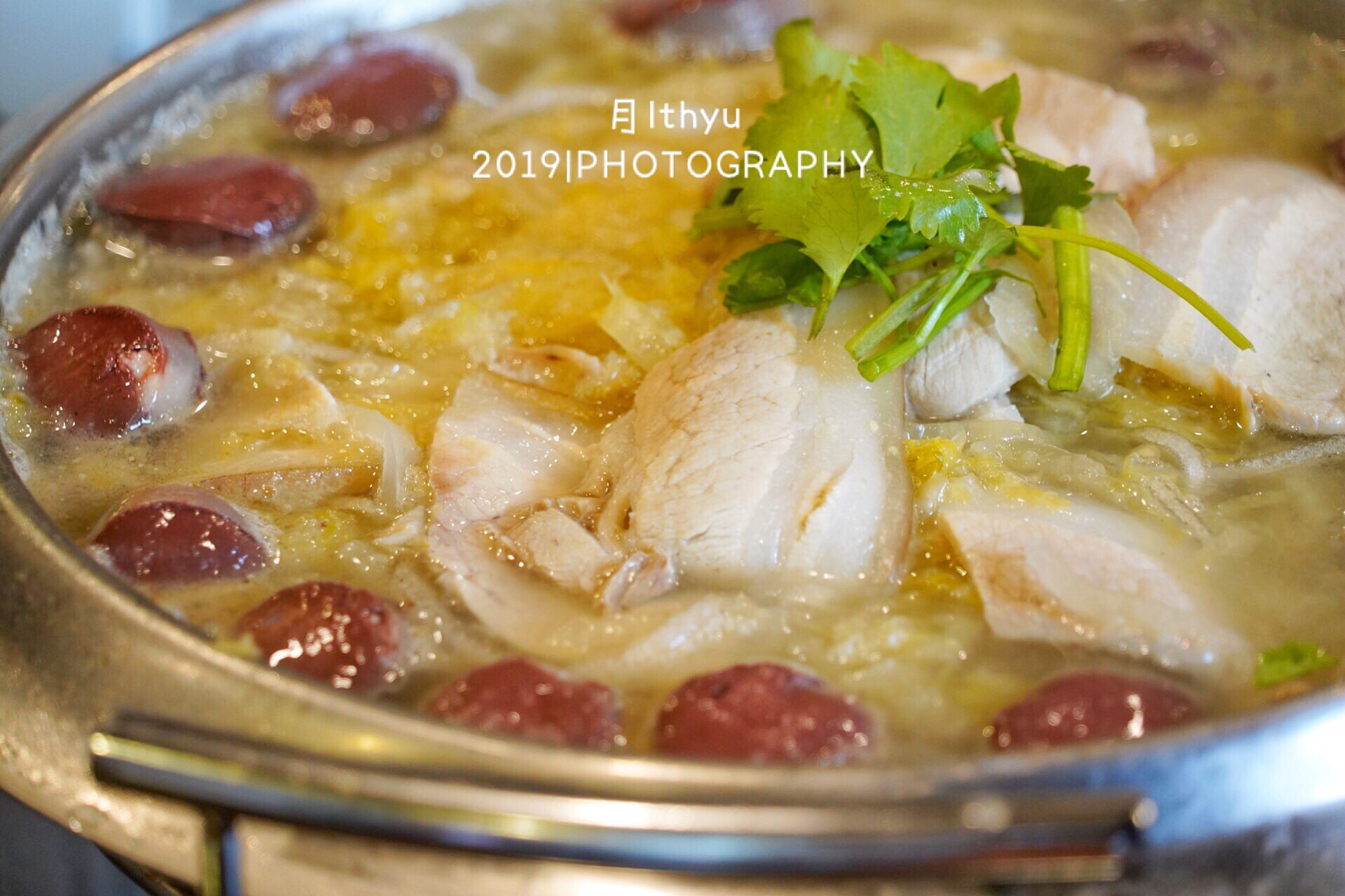 ...有的菜,上面是五花肉,下面是东北酸菜,旁边是血肠,看着就非常丰盛,越煮越香,尤其是酸菜非常开胃
