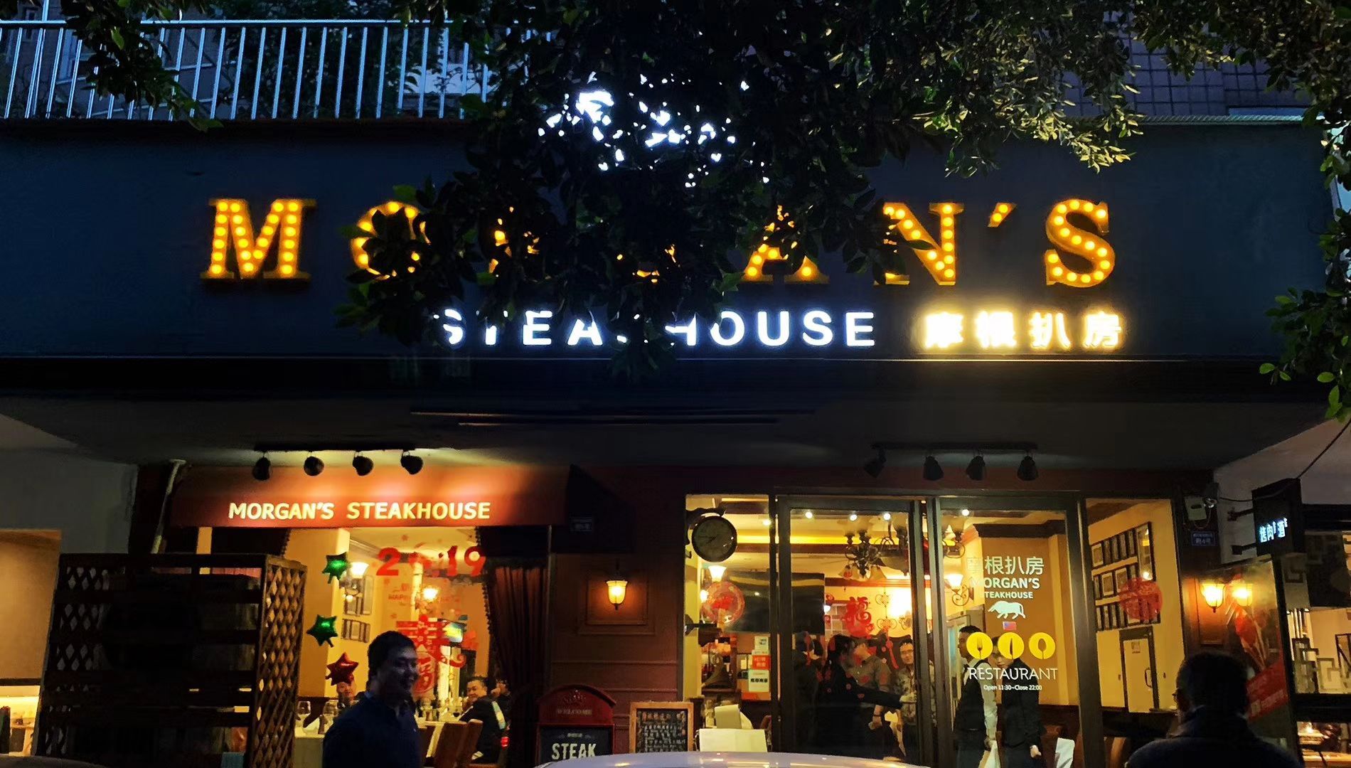 昨晚吃了两块粉红色牛排,桐梓林摩根扒房以牛排著称,多年的西餐小店,在这片富人区口碑保持不错,很多有钱的老外在这一片儿厮混。 牛排第一选品质,第二就是火候,超高温下热度高表皮焦黄后,肉质的水分短时间内锁在里面才会有好的口感,否则生了不敢吃,熟透了又很柴,粉红色就是最佳时机。 餐前面包是软的,我喜欢软的或者脆的,其他一概不认。也一直比较喜欢培根,这家采用厚切烤制,适合自己的胃口。总体感受比我前年来的时间有很大进步,西餐店的品质稳定算是对厨房很大的考验,一直如此就很好。