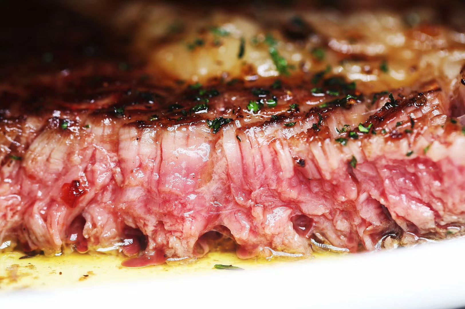 ...后,肉质的水分短时间内锁在里面才会有好的口感,否则生了不敢吃,熟透了又很柴,粉红色就是最佳时机