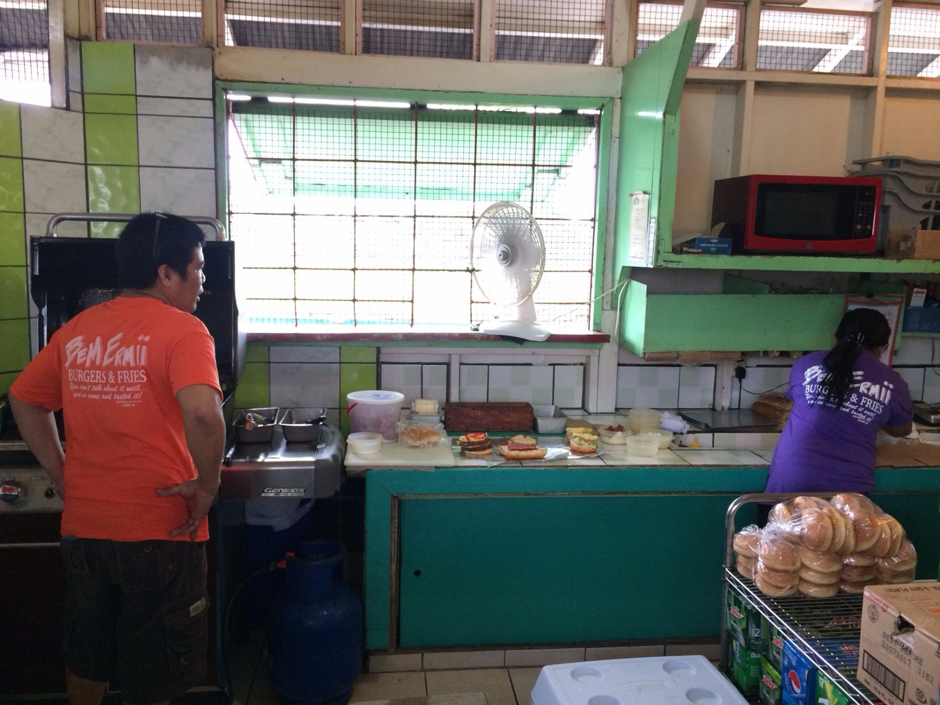 ...中的两天的早餐就是在这里购买的,汉堡包真材实料,当中夹的牛肉又厚又好吃,绝对值得大家来品尝一下这是科罗尔岛上一座有名的移动汉堡包店,我在岛上游玩四天,其中的两天的早餐就是在这里购买的,汉堡包真材实料,当中夹的牛肉又厚又好吃,绝对值得大家来品尝一下。