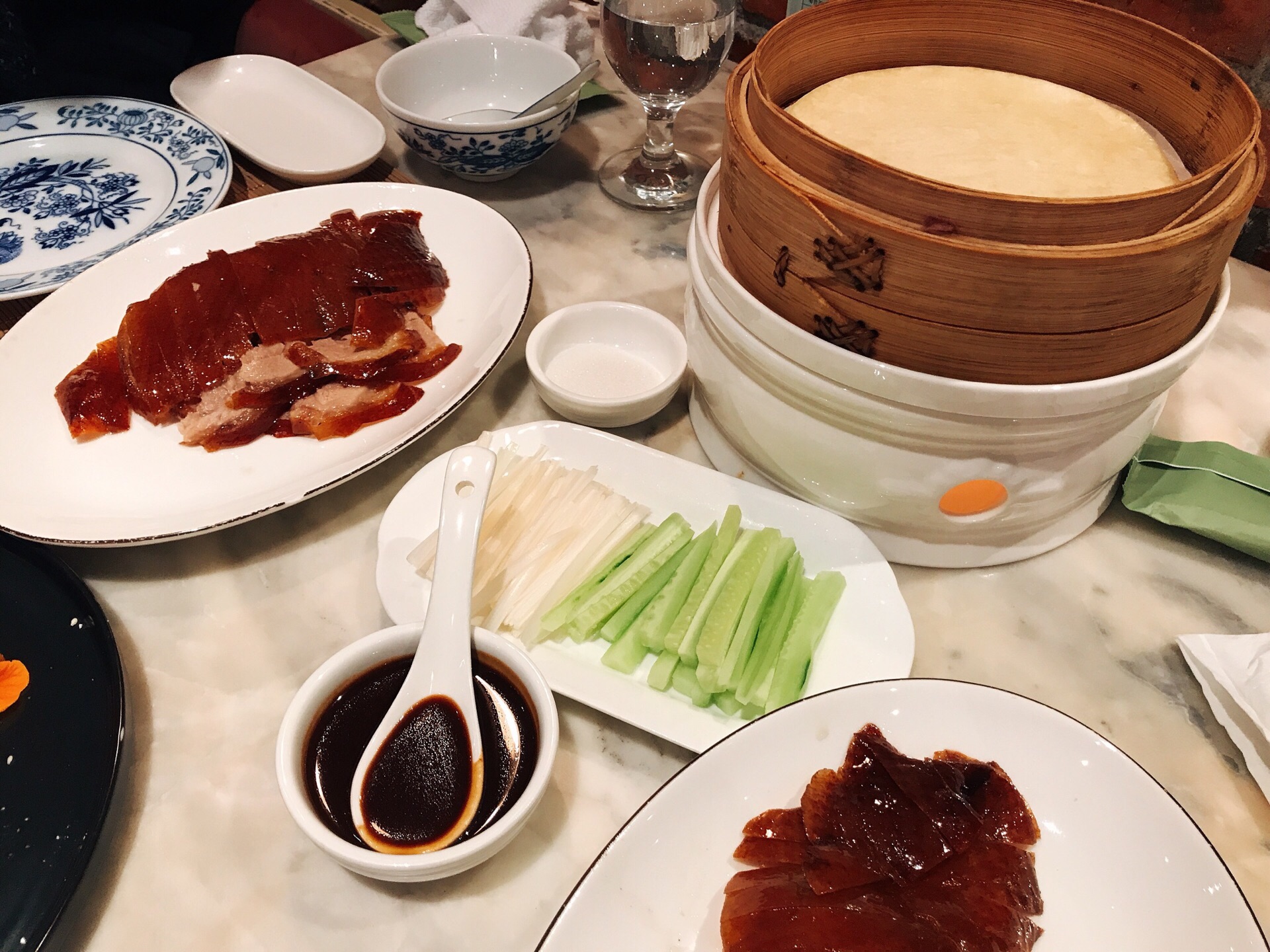推荐蒜泥白肉、糖醋小排,味道很正宗。烤鸭是在旁边先劈的,剩下的鸭架可以有多种烹饪方法,我们选了烧汤喝为了吃烤鸭而来,其实是本帮菜和川菜结合的一家餐厅,环境很宽敞,适合举家来聚餐。烤鸭是在旁边先劈的,剩下的鸭架可以有多种烹饪方法,我们选了烧汤喝。推荐蒜泥白肉、糖醋小排,味道很正宗。