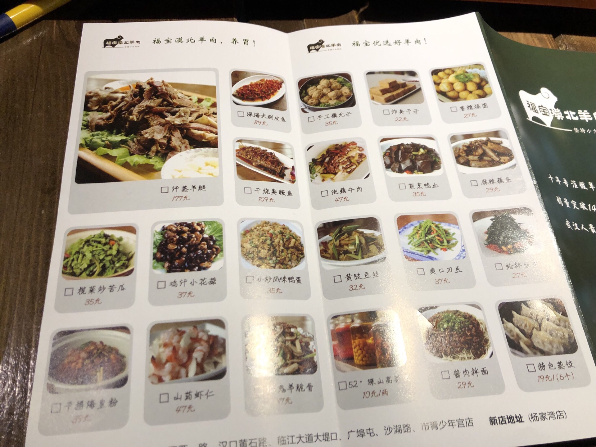 吃羊肉福宝还是不错的选择。 「红焖羊肉」78一斤,点了3斤。汤有点点甜味,挺好,羊肉也不膻。 「大漠羊肉串」羊肉串10块一串,恩,一般。 「羊肉夹馍」就是外面的剁馍,没吃到羊肉。 「黄陂豆丝」豆丝不错,值得一点。 「酸奶」发朋友圈可以送一个,手工酸奶,不错。