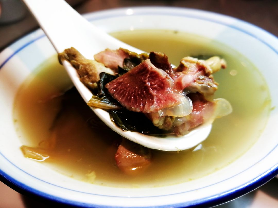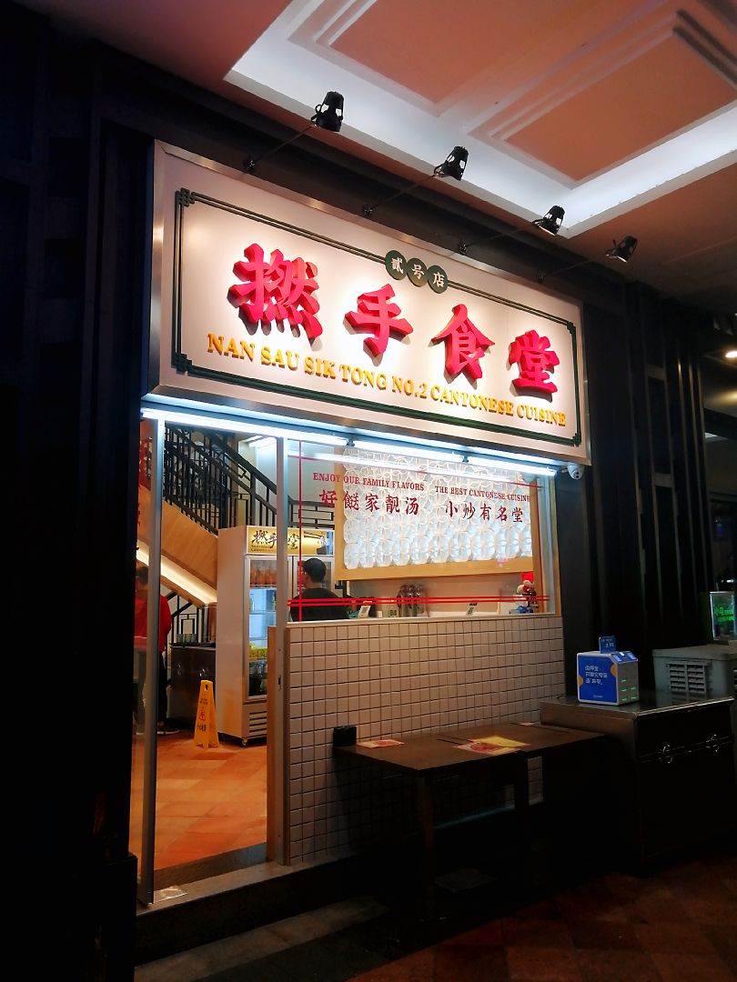 看餐厅名就知道是老广开的店哈哈,仲唔拿拿声去整返两碟撚手小菜! 很低调的店,新开没多久居然要等位,好犀利。店高二层,属于麻雀虽小五脏俱全的类型,内里整洁明亮,含蓄内敛的格调像极了广州人务实的风格。 打开菜牌,纯粤菜口味,都是些家常菜式,关键全是姐姐爱吃的!四个人,点了店内招牌的几个菜,出品总体水准不错,推荐:原只椰子炖乌鸡汤、猪油渣炒菜心、鼓油王大虾、虾酱蒸板筋、招牌牛腩煲、五柳炸蛋。再来支泰国豆奶(谷物味),完美。 试业期间是免茶位的,饭后还赠送了清润的雪耳糖水,温温润润不太甜,很是贴心。
