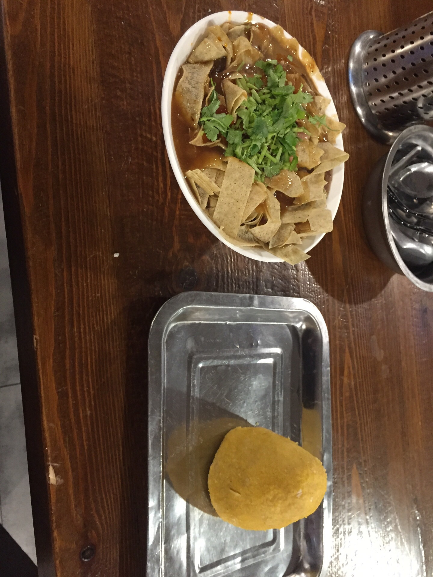 今天早上有时间,来到位于北辰区天穆镇顺义道金玖家园小区一楼临街底商的伊品轩饭店吃早餐,他家早餐业务经营快一年了,在顺义道这条路上,大的室内早餐店少之又少,点了一碗锅巴菜一个窝头,吃着很舒服!不错以后有时间再来!
