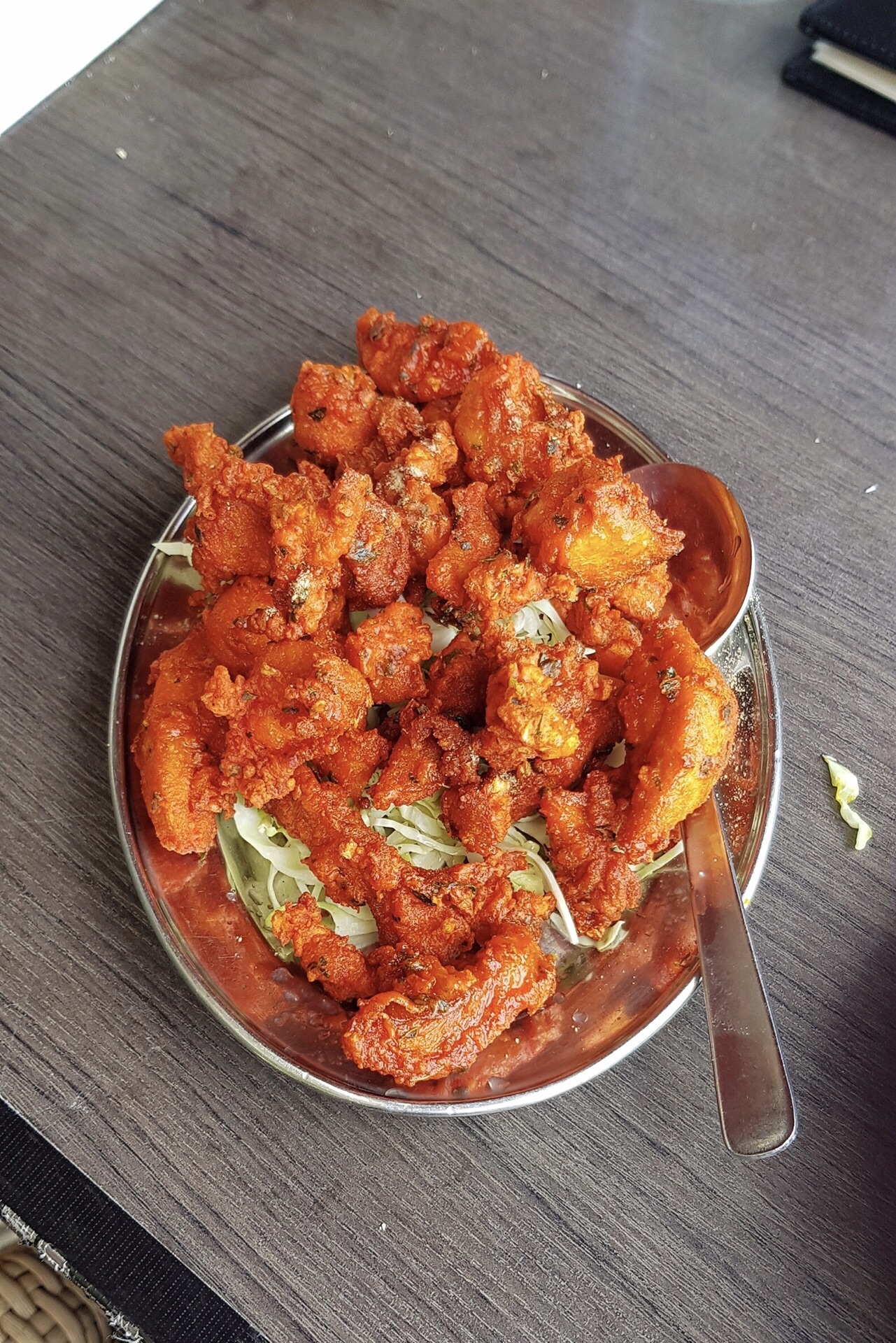 ...合我们的口味了,辣咖喱拌饭简直是绝配,还有一些油炸类的小食品,像极了电影里贫民窟的那个油炸果子算是很精致的印度菜了哦,吃起来有点辣辣的,倒是很符合我们的口味了,辣咖喱拌饭简直是绝配,还有一些油炸类的小食品,像极了电影里贫民窟的那个油炸果子