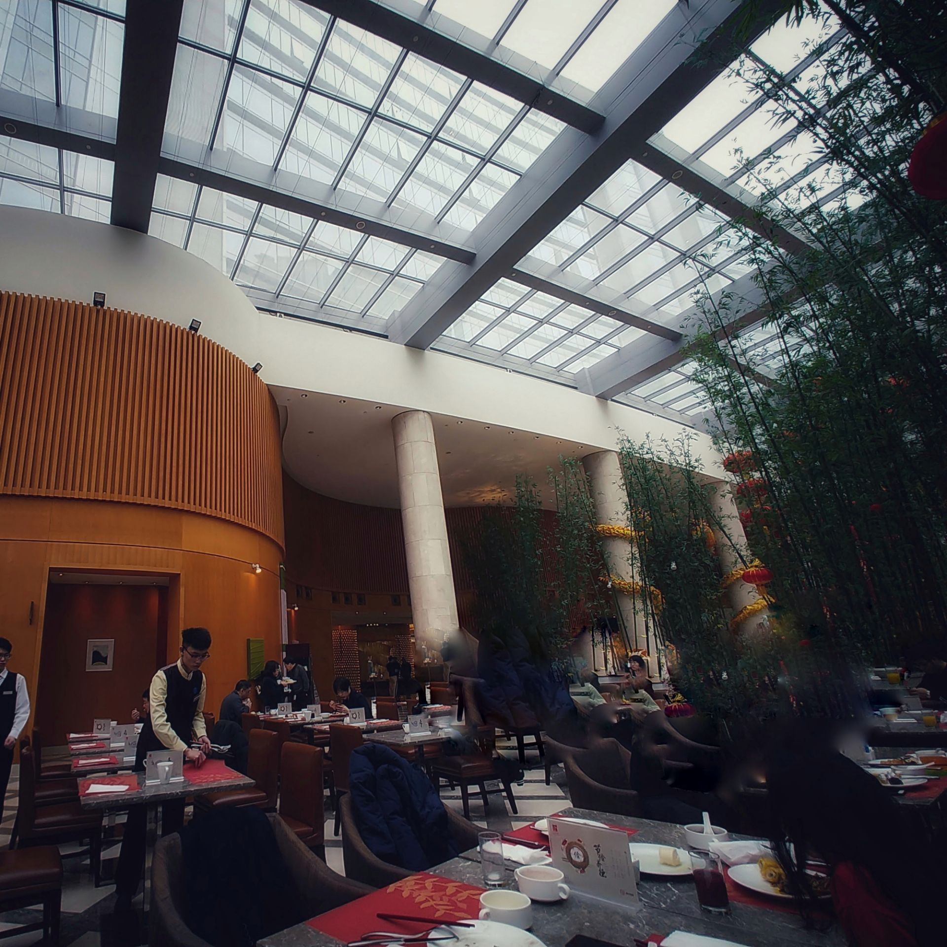 特色的鸭血粉丝汤简直以为自己吃了碗假的呢。全玻璃天花板还是挺美的,除此之外泛善可陈全玻璃天花板还是挺美的,除此之外泛善可陈。 特地晚点才去以免撞上旅游团。期待值已经很低了没想到可以更低。简单来说就是没什么吃的。特色的鸭血粉丝汤简直以为自己吃了碗假的呢。 服务还算是勉强保持了一点,有带位。