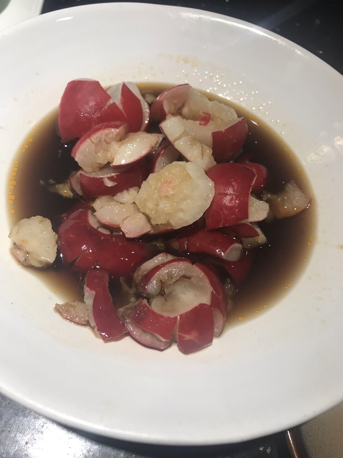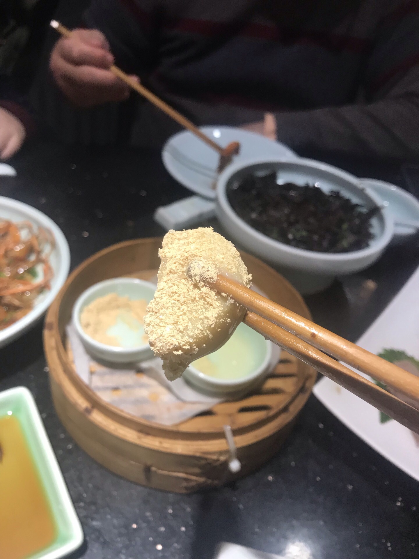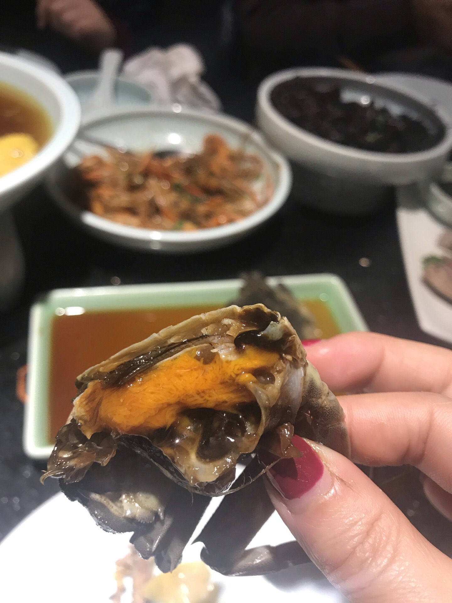 先生祖籍绍兴,他总说那里才是读书人,可我想起鲁迅笔下电影中的孔乙己悲惨的人生,却唏嘘不已。言归正传,在一个下雨天的周末,从市区开了一个多小时的车程才找到这里,停车真的是蛮伤脑筋的,我们来的时候只有在一扇大门前停放,但店里人说没关系,就停在那里好了。 太雕鸡~真的很入味,酒香扑鼻,吃口鲜嫩。 醉蟹~那种甜甜的酒味我特别喜欢,掰开黄也蛮多的,先生要开车,没敢吃,我觉得一个人两只都不过瘾,下次应该再打包几只回去。 肉汁笋干~细嫩鲜香,虽然看着酱油颜色很深却一点不咸,必点。 酱油河虾~是我吃过味道最特别的一次,也是有着浓浓的黄酒味。也许绍兴人对黄酒真的是有固执的偏爱! 腌小红萝卜~酸甜可口又开胃 白切鹅~肉质一点也不柴,白斩鸡的吃法蘸酱油也很不错。 点心年糕蛮让我惊喜的,其貌不扬,可是蘸了炼乳和黄豆粉,入口软糯香甜,欲罢不能啊。 酒酿圆子稍显一般,可能我个人不太喜欢有芯子的小汤圆还有放鸡蛋的做法。 反正所有菜都好吃,店内装潢也很有读书人额米道!