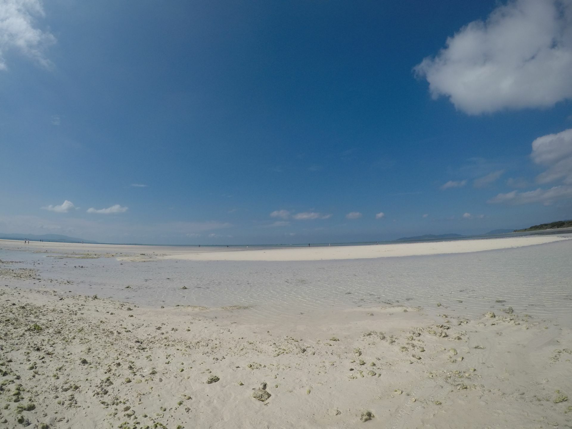 竹富岛最好的海滩之一,目之所及,一片海蓝延伸至天际。退潮时可以涉水徒步到海中的沙洲,别有一番趣味。海滩边有洗手间、更衣室及其他租赁设施,还有野餐区域。由于海浪比较平稳,很适合海水浴和浮浅。需要注意的是海参极多,注意脚下,别踩到。