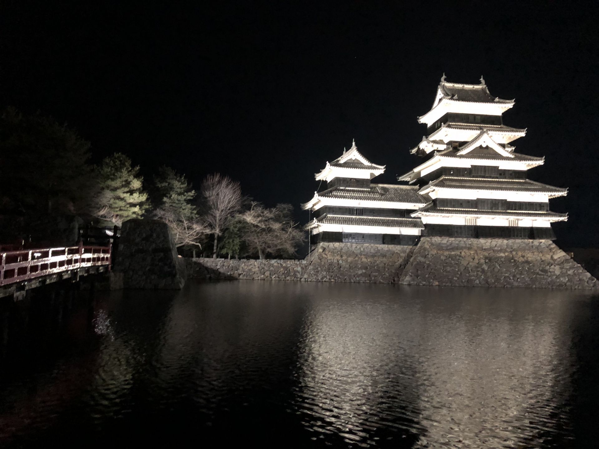 长野县有名的景点,城外护城河十分宽阔,城里也可以看看,不过需要购票,天气晴朗时看看真不错 晚上...日本的国宝名城之一,长野县有名的景点,城外护城河十分宽阔,城里也可以看看,不过需要购票,天气晴朗时看看真不错 晚上亮灯时又特意过来了看看,感觉和白天完全不一样呢