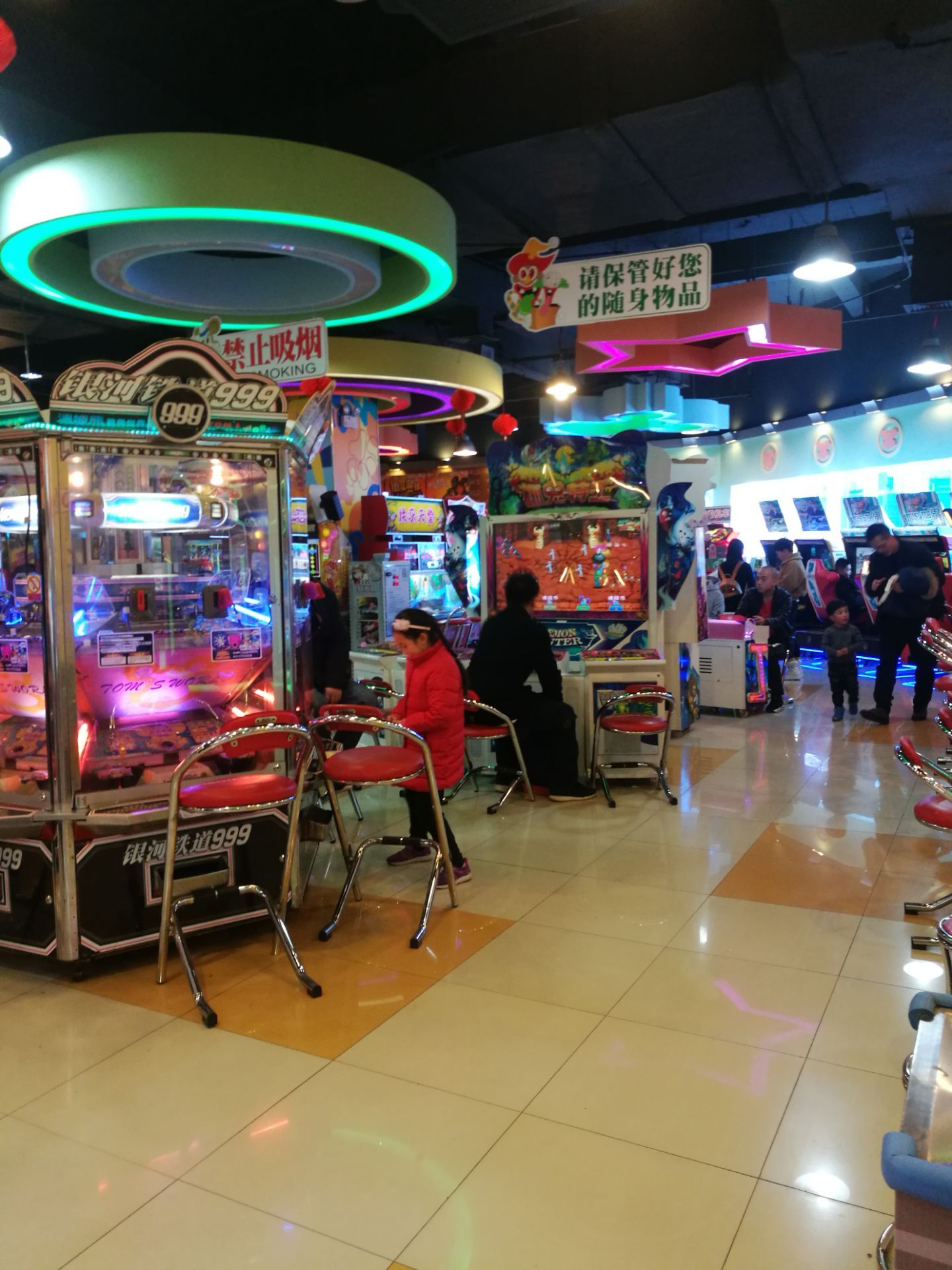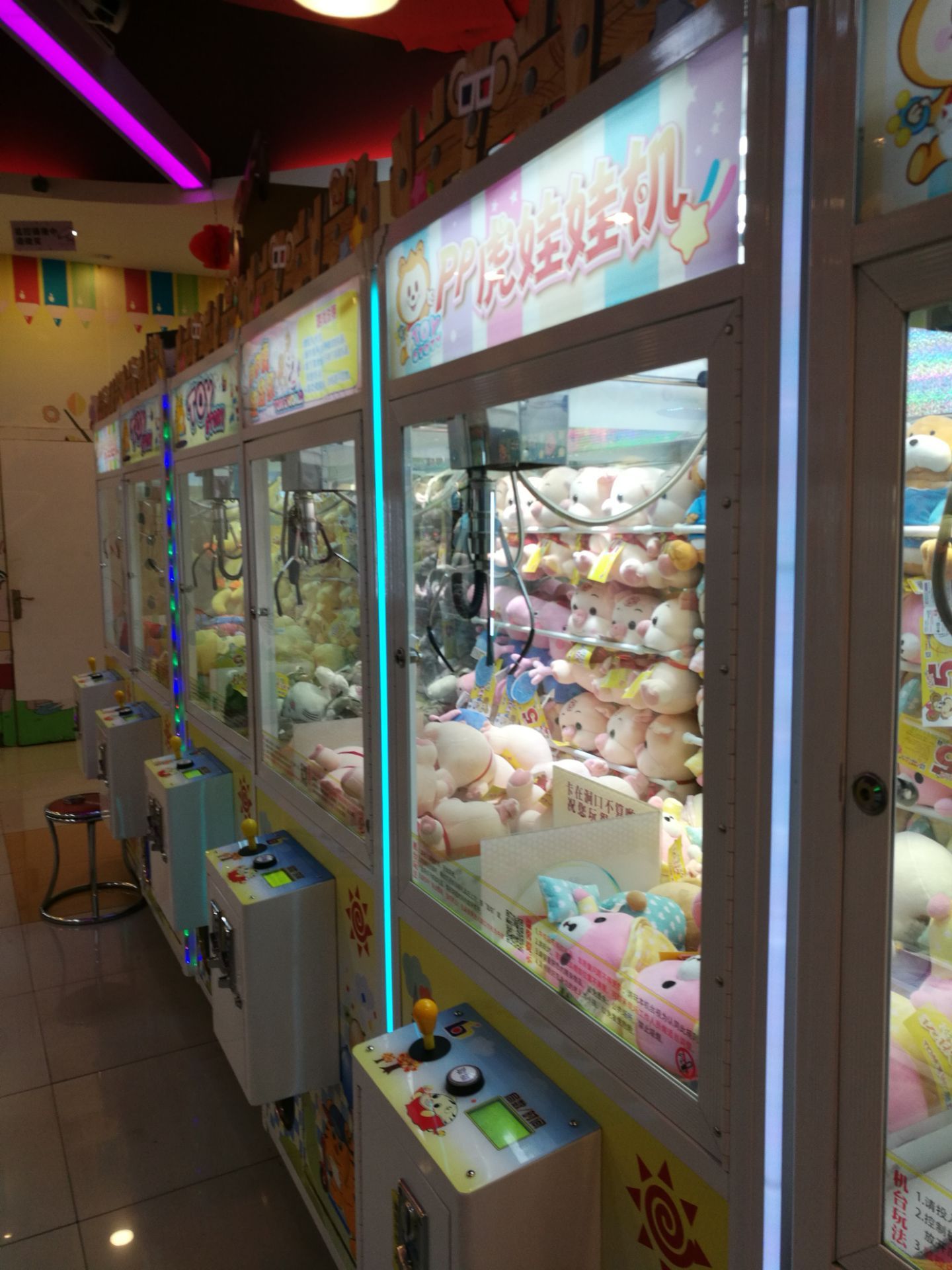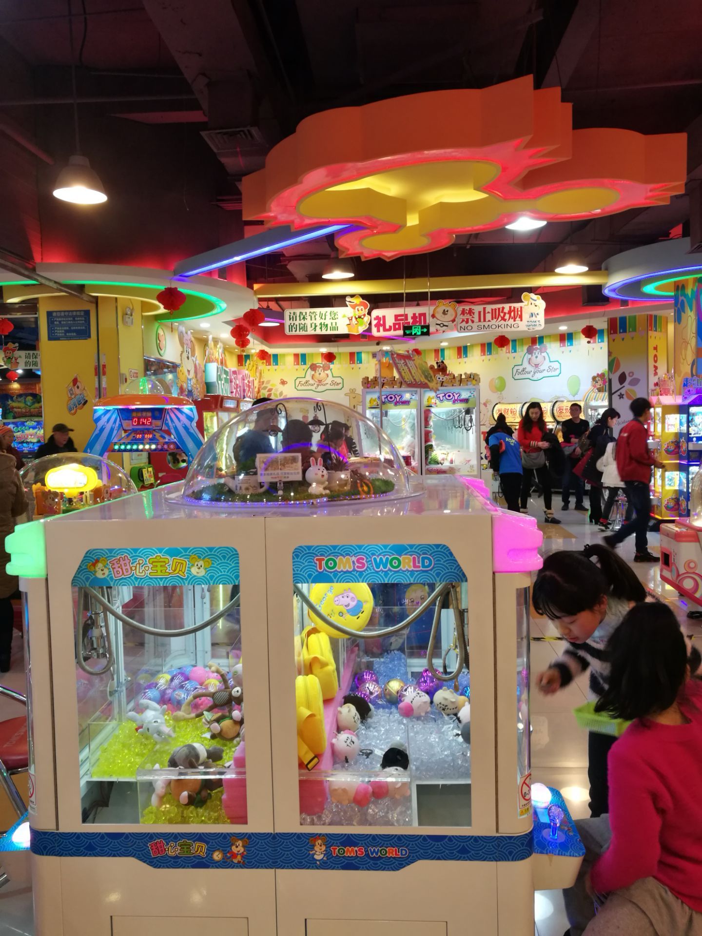 打游戏的人也特别多,夹娃娃的机器爪子很松根本夹不到。其他的游戏也不好玩,30个游戏币没有用完就想走了