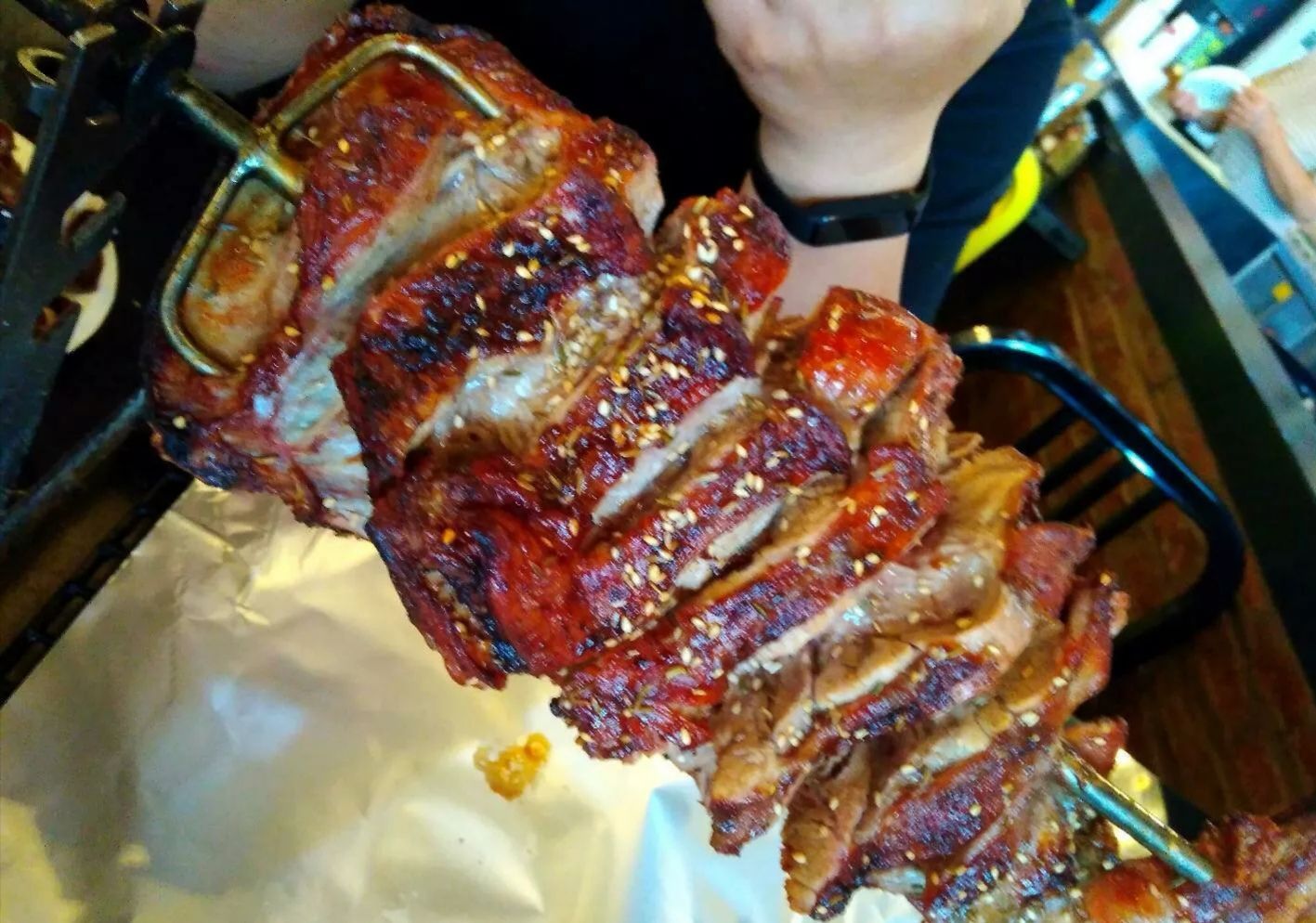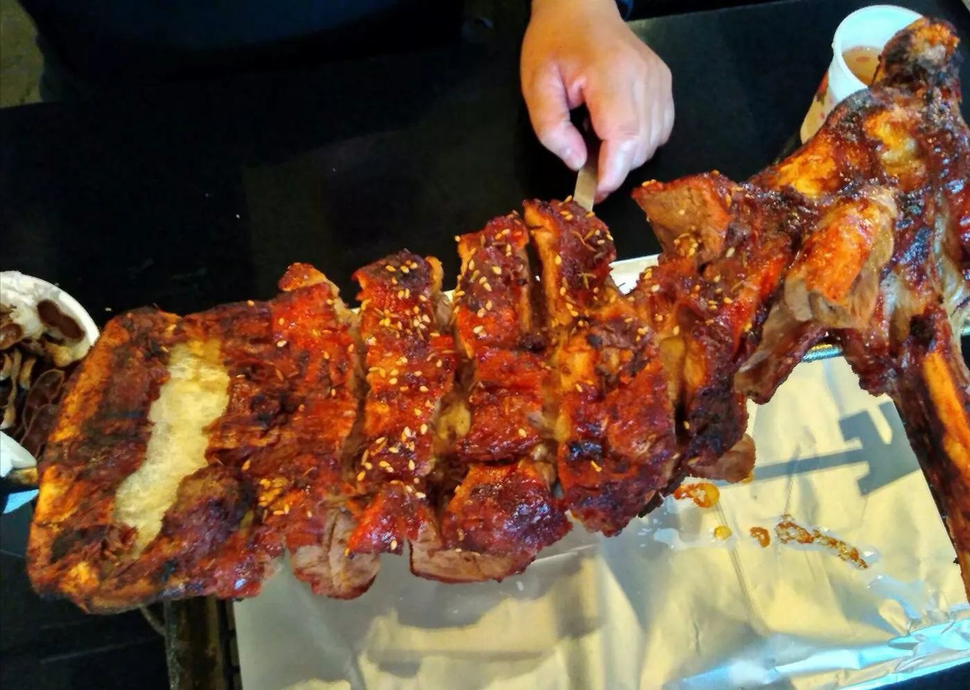 ...不错,烧烤的很入味,皮焦肉嫩的,滋滋冒油,吃着烤着最好吃,盐水花生和酸梅汤配合烤羊腿非常的到位他家的羊腿比较美味,羊腿三斤多,羊肉品质不错,烧烤的很入味,皮焦肉嫩的,滋滋冒油,吃着烤着最好吃,盐水花生和酸梅汤配合烤羊腿非常的到位。