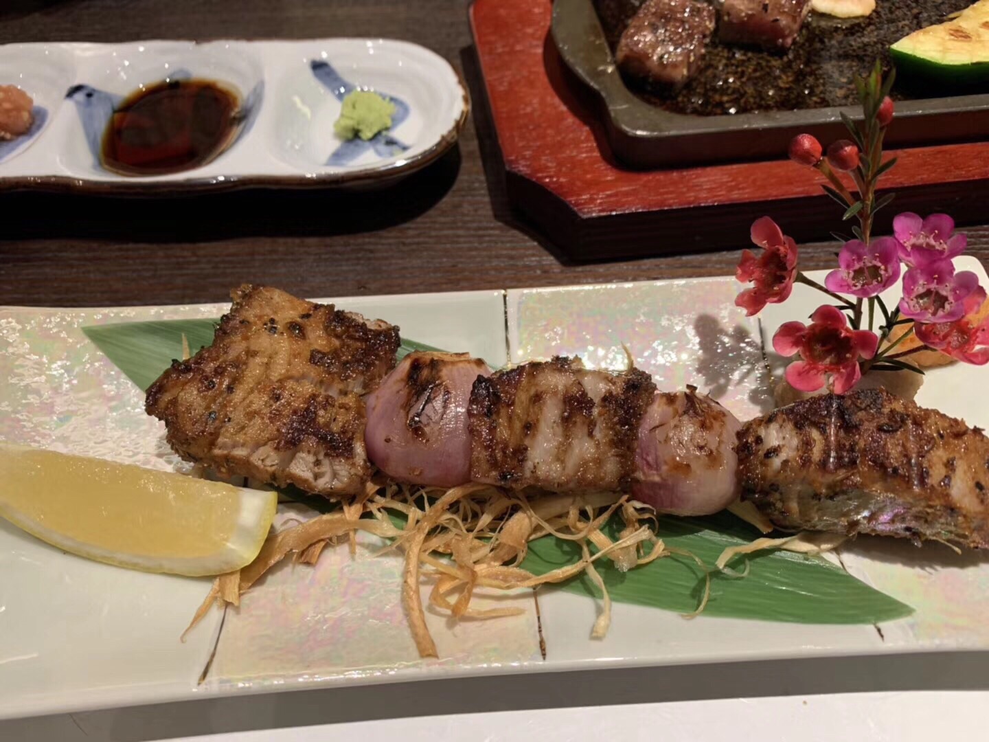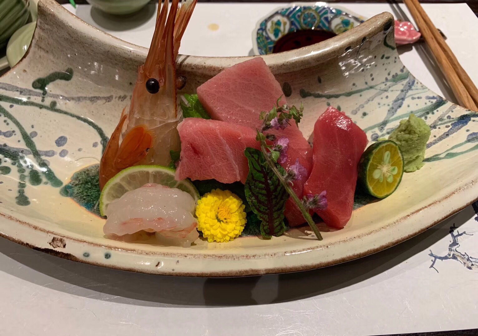 不管是牡丹虾、金枪鱼都很新鲜,而且摆盘出品精致美观非常推荐的一家日料,环境好,味道赞,除了小贵,没别的毛病烧肉都是瘦肉,还能嫩嫩的,不柴,说明用料极为讲究;不管是牡丹虾、金枪鱼都很新鲜,而且摆盘出品精致美观。