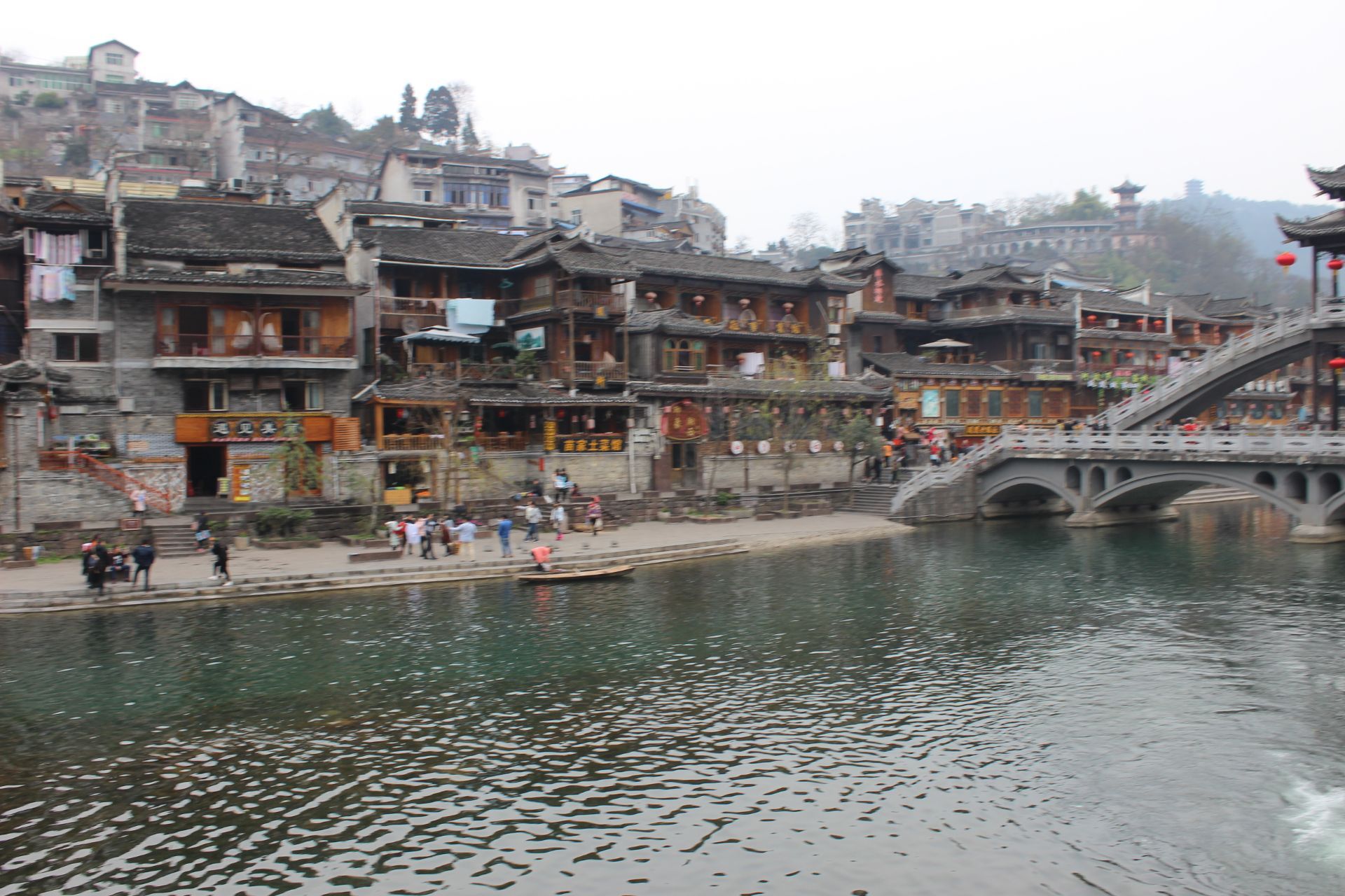 河上的今天已经看不见渔歌互答,只有不时经过的游船,反而显得飘零萧条古城的母亲河,穿城而过把古城分为两半,河水清澈而平缓,只在水车部分或许是地势起伏而变得湍急。河上的今天已经看不见渔歌互答,只有不时经过的游船,反而显得飘零萧条。