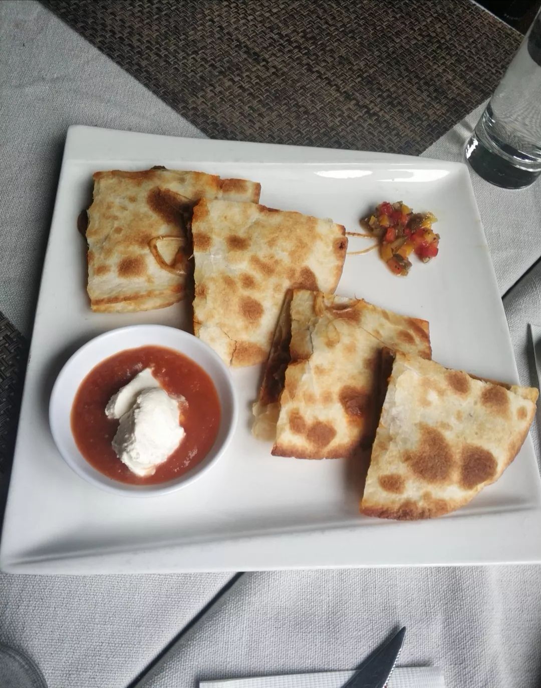 鸡肉芝士薄饼,薄饼有很多种內馅,牛肉,鸡肉,加芝士,加奶酪,芝士很好吃,味道很棒