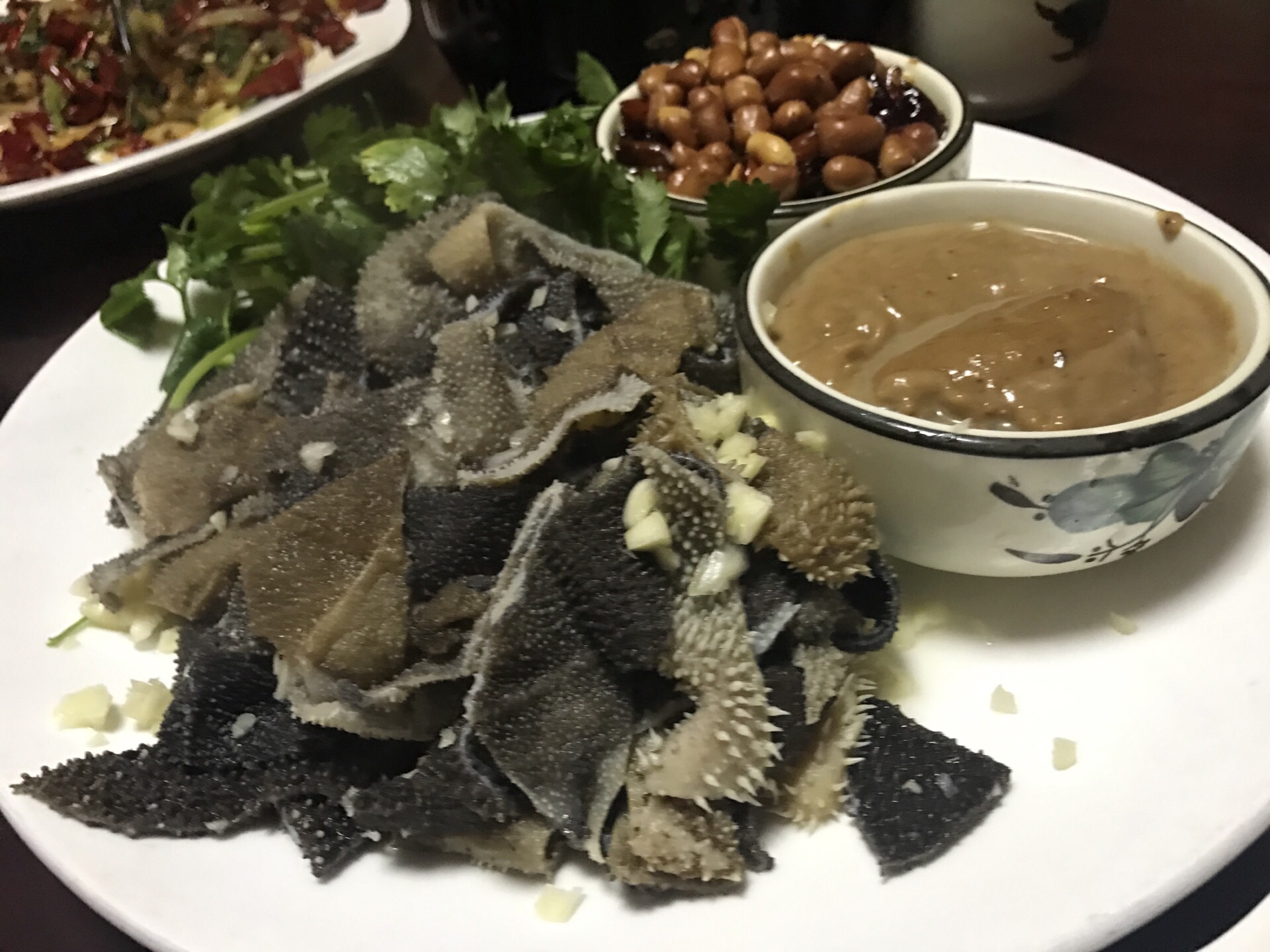 没想到量太大了,根本吃不完。主要是想吃爆肚了。店里环境一般,可以抽烟,都是本地人喝酒聊天的。总体挺好