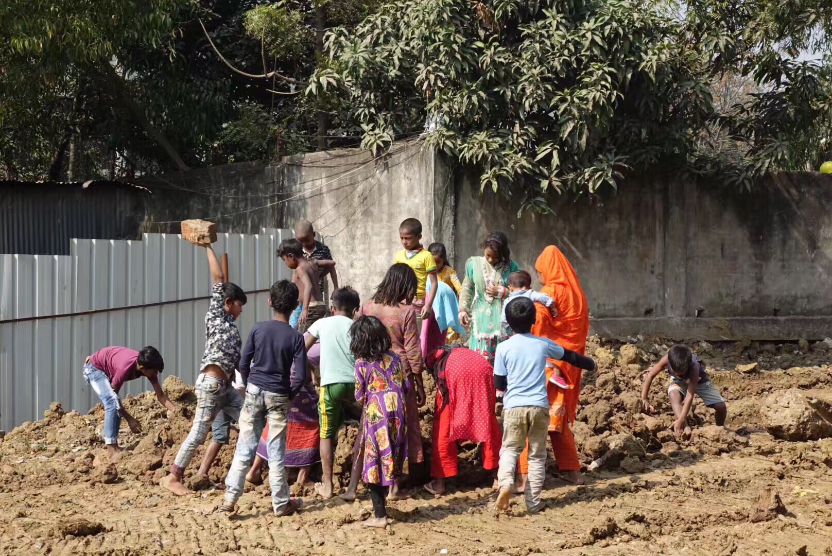 ...就蜂拥而上用小手在泥土里挖东西,原来找的就是这些砖头,生活如此艰辛,但孩子们脸上还是充满了笑容达卡的一个贫民窟,旁边工地正在整理,当推土机工作时孩子们退到一边,机器一停下来孩子们就蜂拥而上用小手在泥土里挖东西,原来找的就是这些砖头,生活如此艰辛,但孩子们脸上还是充满了笑容