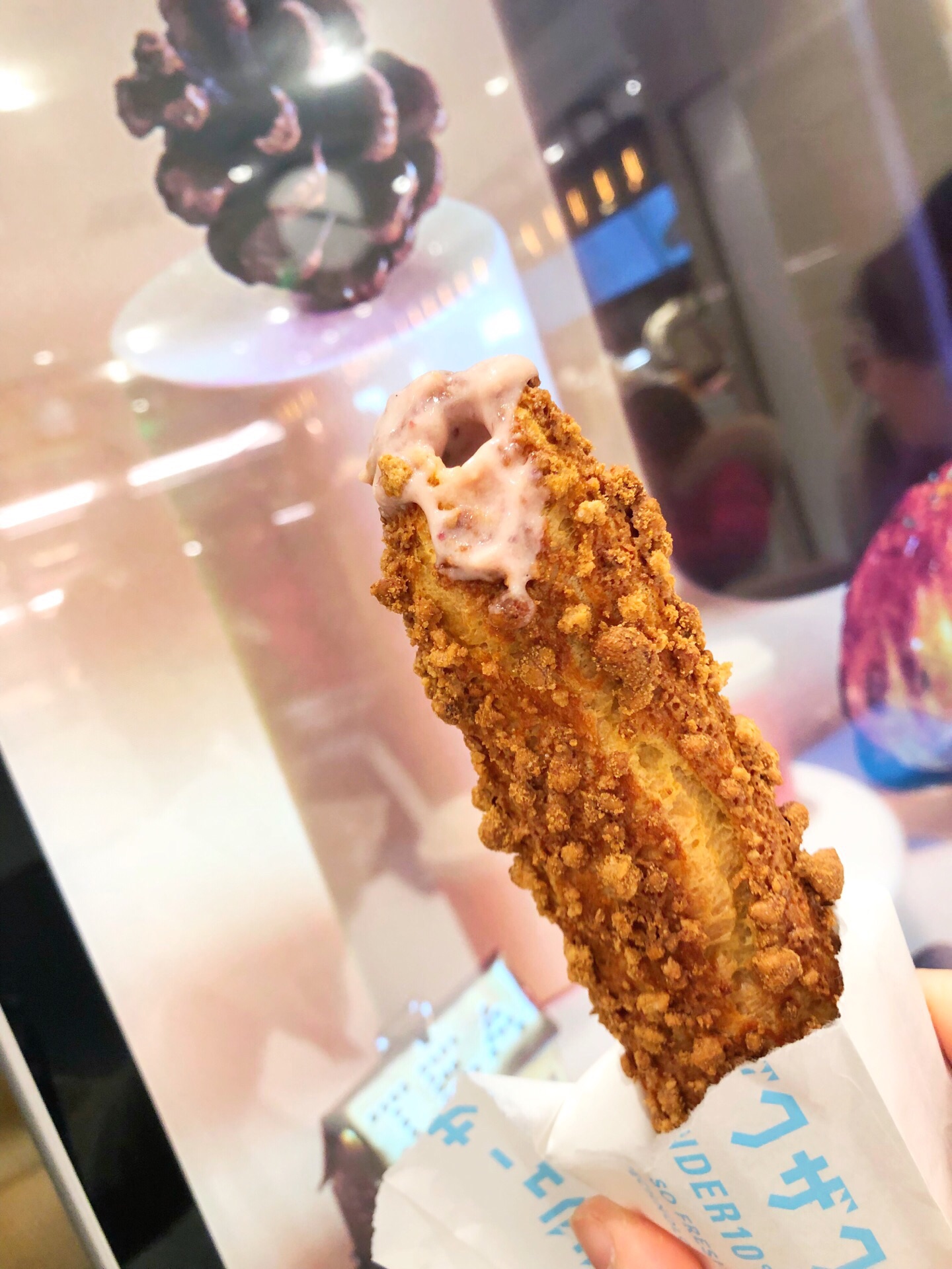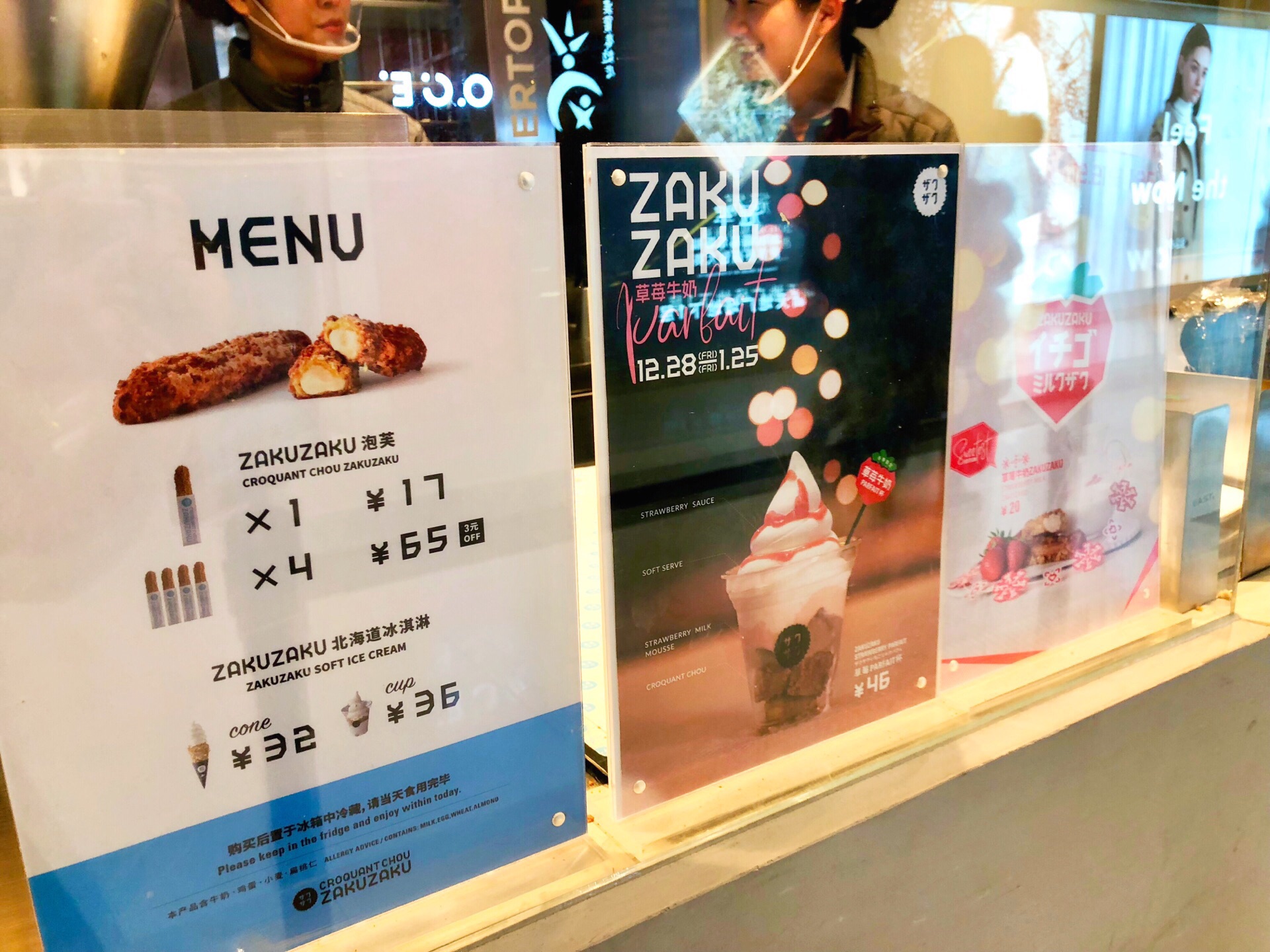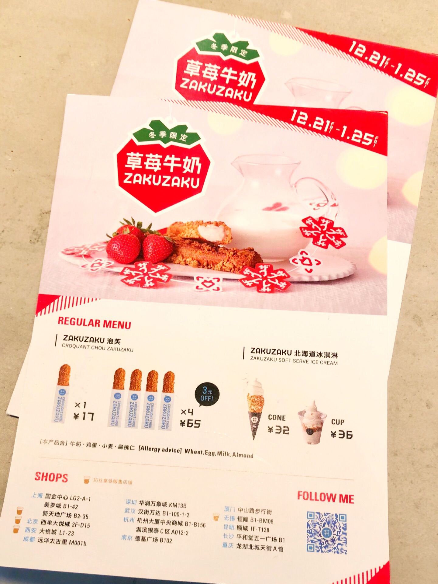 地理位置不好,就在风口处,大衣没穿就跑来买,没把我冻shi… 选择了草莓牛奶限定口味的,20块钱一根,性价比还可以。买四根还有优惠,就便宜4块钱而已… 但个人觉得味道一般般…不过外皮口感很喜欢~ 限定款不能轻易尝试!要吃还是要吃经典的哦!下次还可以试试冰淇淋~