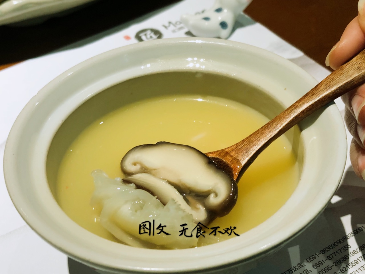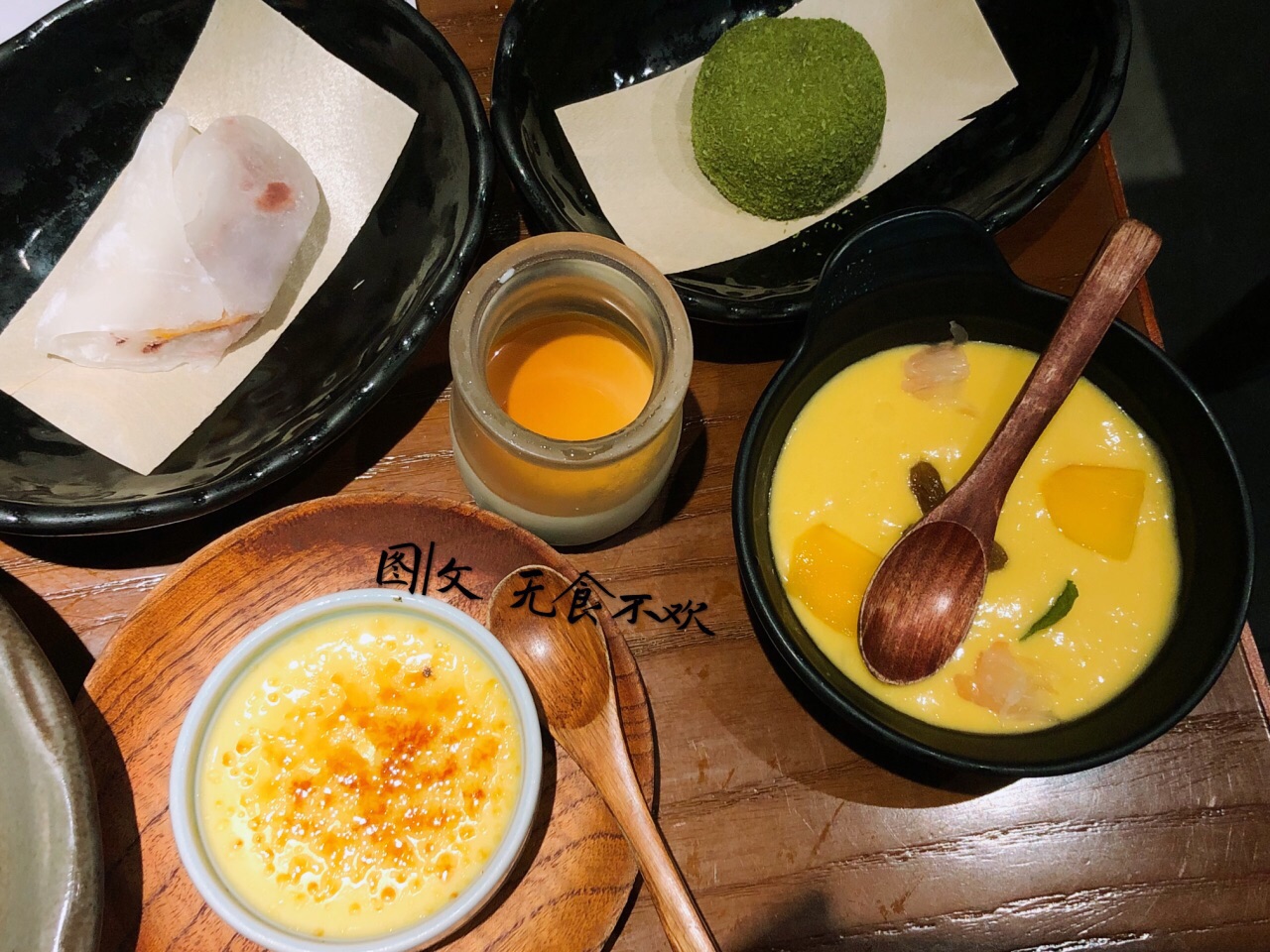 许久没吃日料自助了,嘴馋,特地越是喜爱日料的好朋友来狂吃海喝一顿。 环境还算舒适,就是桌距稍近,隐私感稍微欠缺一点点。 头盘:上汤鱼翅 每人一例,是热的,餐前吃暖一下胃又滋补。 刺身综合拼盘 点了自己喜爱的刺身,师傅给制成摆盘精美的刺身综合拼盘,非常豪华的感觉,鲜美的甜虾、丰腴的三文鱼、爽脆的赤贝、北极贝、清脆的象拔蚌、螺肉以及丰美的金枪鱼等,真是令人十指大动啊,食材新鲜、味道也很赞,自助就是任性可以无限续点。 拍松牛肉 薄薄的牛肉片颜色绯红诱人,口感细腻柔滑。 鲜虾酪梨手卷/蟹子手卷 没什么好挑剔的,就是上桌要赶紧吃掉,不然手卷皮就不脆了。 红酒/铁板鹅肝 两种不同口味的鹅肝,各有风味,铁板的更绵软而红酒口感细腻丝滑。 鳗鱼蒲烧 颜色十分诱人,鳗鱼肥美,烧汁甜美,入口滑嫩香甜。 焗蟹宝 满满一蟹壳的蟹肉,千丝万缕,跟蛋黄酱搅拌同食甚是美味。 土瓶汤 土瓶蒸也是我非常喜欢的,必点单品,鲜虾、蛤蜊、三文鱼肉等蒸煮出来,汤头鲜美清爽,加入金桔就更多了一分水果的清香。 松坂猪肉小石烧 这个推荐,松坂猪肉很嫩味道微甜,不油腻。 牛肉朴叶香烧 用朴叶包裹后烹制,上桌后拆开叶子一股肉香味便弥漫开来,牛肉软嫩。 厚烧牛舌 牛舌厚切却不柴不干,口感比较嫩,也入味。 鸡软骨/紫苏五花肉串/牛肉串 各种肉串,个人比较喜欢五花肉串美味又不会太油腻。 这么多美食轮完已经完全吃撑了,但是菜单上还有好多没点,只好下次再来,点了几个甜品,有浓稠香味馥郁的杨枝甘露,嫩滑香甜,奶味醇厚的焦糖布丁完美收尾等。 店名:匠和风精致料理(万达广场湖里店) 地址:厦门仙岳路万达三楼 人均:午餐自助188/晚餐自助218