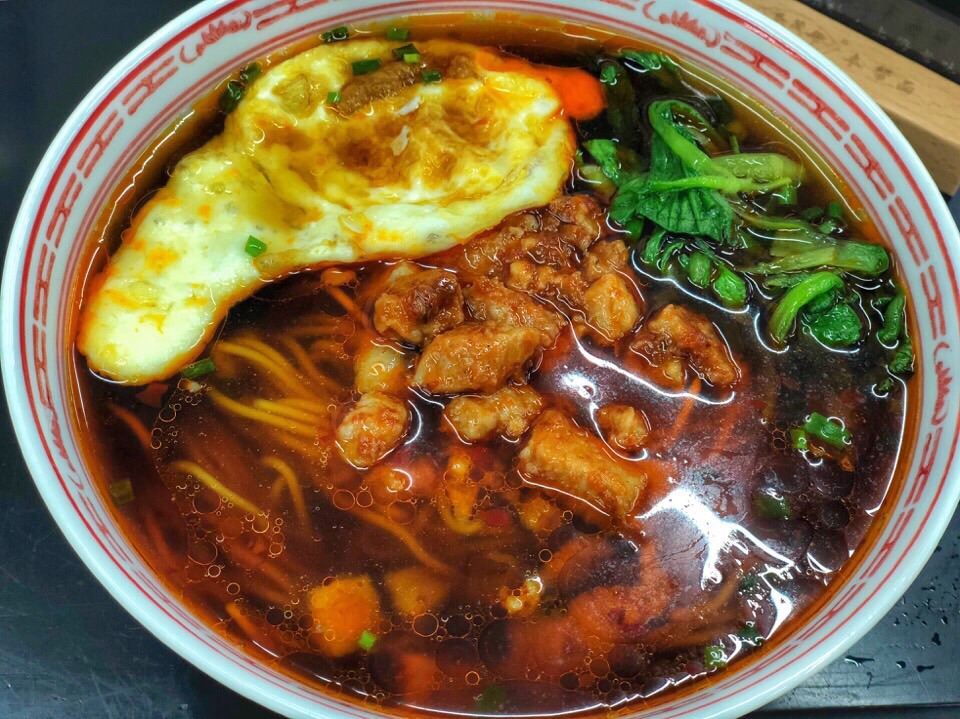 ...碧绿生青的鸡毛菜 红汤底 面条软硬适中 荷包蛋还有一丢丢流质 整体还行 附近就餐 又多了个去处