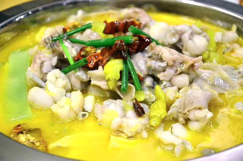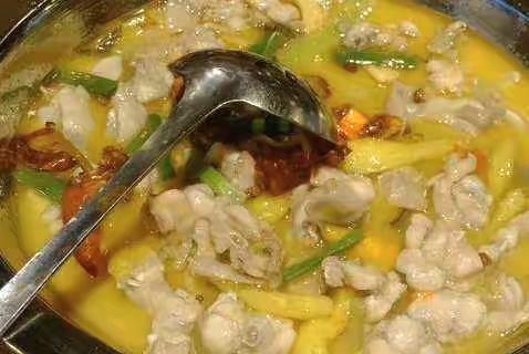 福建这边的连锁店,很奇怪为何福建这边这种连锁店都是川菜?主打泡椒田鸡,必须尝一尝,味道酸中带点微辣,田鸡肉特别嫩,下面还有腐竹。蟹黄豆腐味道一般般,不甜不咸的,感觉有点尴尬。炒青菜就还好了,三个菜两人吃还行,毕竟南方菜量