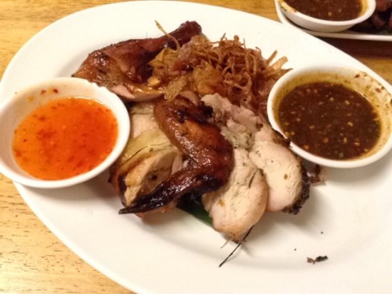 ...申请老字号了,烤鸡肉是招牌,确实很好吃,尤其搭配了她们提供的沾料,很浓郁,不过鸡胸的部分有些柴餐厅的环境很朴实,已经开了好多年,快要申请老字号了,烤鸡肉是招牌,确实很好吃,尤其搭配了她们提供的沾料,很浓郁,不过鸡胸的部分有些柴