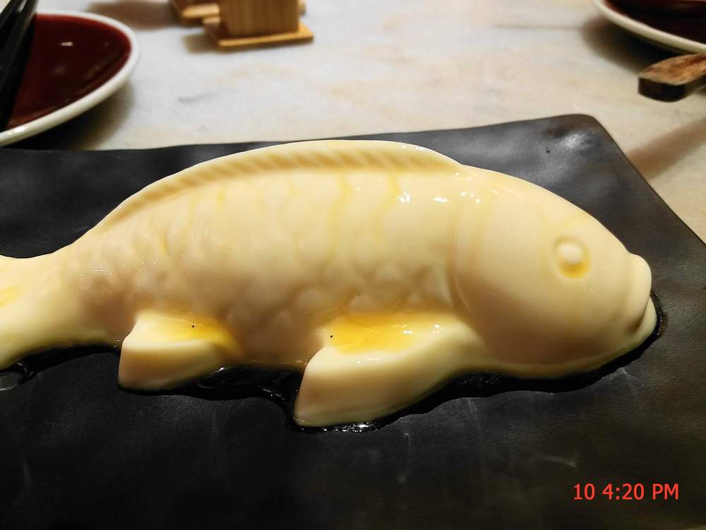 菜品可口,丰富有创意,其中干酪鱼造型漂亮逼真,做成一条鱼的模样,奶味浓厚,口感润滑