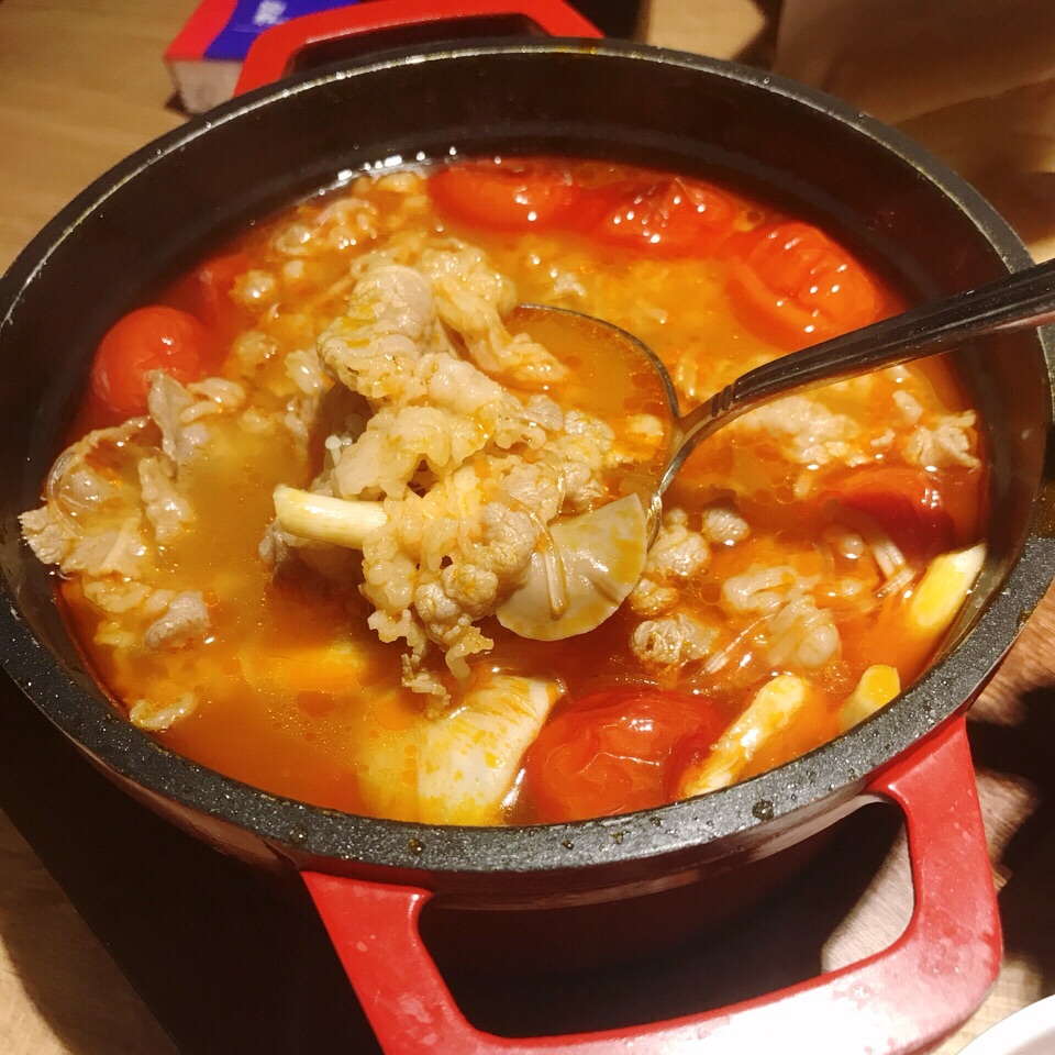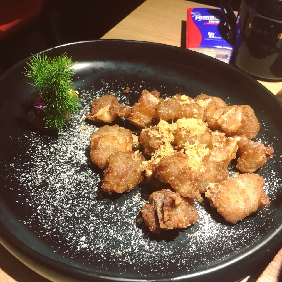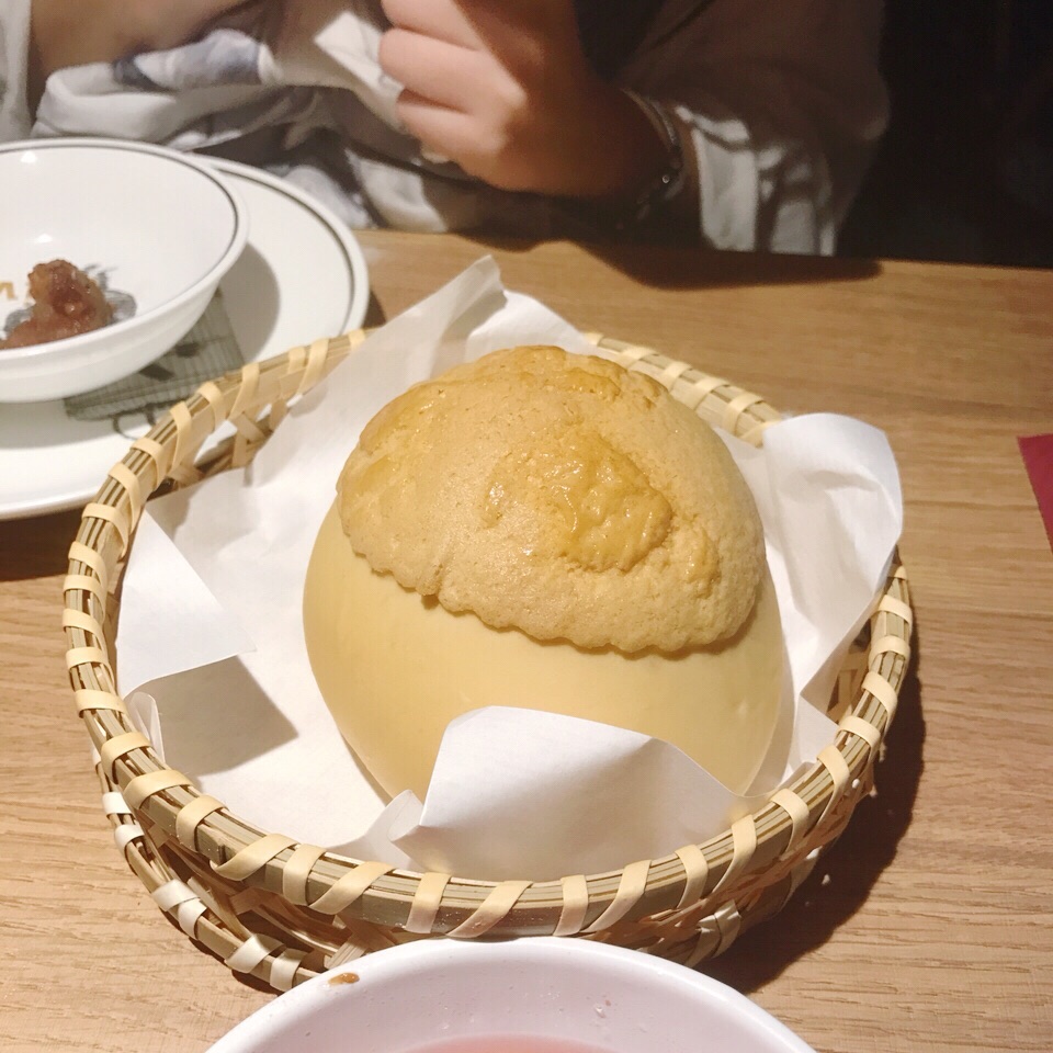 ⛳️在天环广场的小炳胜,拿号排队很吓人,最少也等一个半小时以上,但就在负二的扶梯隔壁,比较好找。 装修风格偏小资,以小桌座位为主,整体的灯光偏暗,和炳胜的确差别较大,看得出定位是做创新粤菜,不过桌与桌之间有点窄。 ༓༓༓༓༓༓༓༓ 【桂花圣女果】 比较清新的一个凉菜,开胃,适合夏天,酸就还好,甜比较突出,还带点桂花香。 【烤蒸南海黄花鱼】 说是烤蒸,烤的感觉没有很突出,更多是上汤蒸熟的感觉,感觉更加像盐水黄花鱼,鱼的味道还算鲜,肉够嫩,感觉没有特别惊喜。 【花胶炖老鸡】 花胶的量很足,汤也够鲜,22元一位真的算实惠,其实两个人分都可以的,足够能分两小碗,推荐。 【雪山奶露包】 招牌推荐,可能个人对包之类的点心一般般,感觉松软还可以,但奶的味道没有很突出,中规中矩。 【酸汤白贝煮肥牛】 酸汤系列,点一个试试,酸汤的酸还好,但肥牛和白贝都没有很入味,肥牛味淡,味道普普通通,有点失望。 【小时候的蒜香骨】 蒜香骨很惊喜,炸的刚刚好,不会太硬,虽然蒜香味不算很浓,不过整体很不错,而且分量真的很足,性价比高,推荐! 【招积茄子】 踩雷!对比48元的价钱,很失望,油炸过后的茄子非常油腻,不咸不淡的来也没有什么特别的味道,跟蒜香骨一样价[汗]。 【菠萝包】 松起很大个,馅儿也还可以吧,不过香甜就欠缺。 一次过点了不少推荐菜,中规中矩,多数没有什么惊喜,下次再来试另一批推荐菜,想拔草小炳胜,建议去别的分店,因为天环真的劲多人!