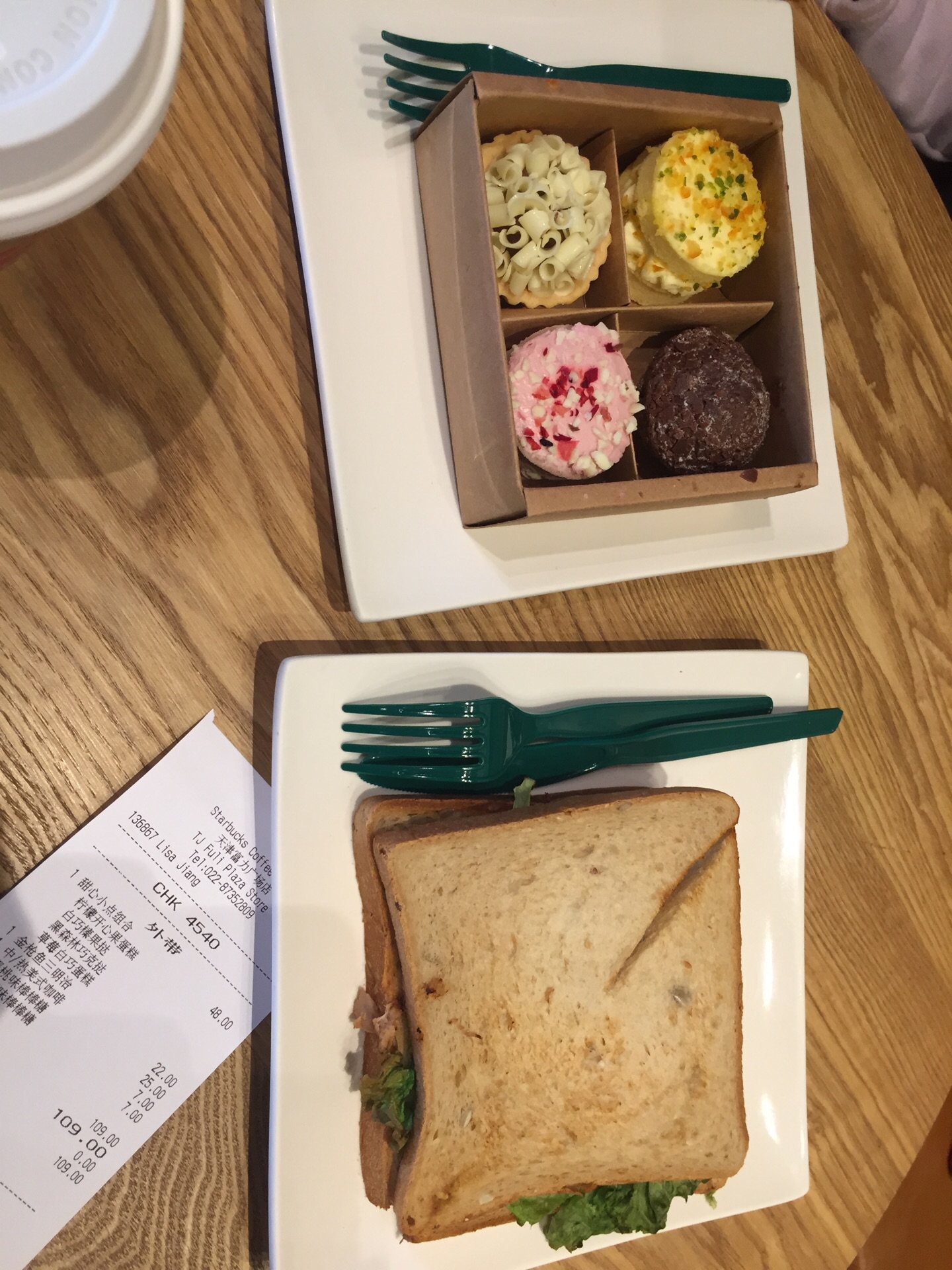 最近经常来星巴克来吃午饭,因为每次都会换着点咖啡,所以照片就不放咖啡了,金枪鱼三明治,鸡肉帕尼尼,还会各种点心,巧克力,蜂蜜提子等,鸡肉蔬菜沙拉等,都会换着吃,味道不错!也很喜欢,星巴克是一个适合吃吃喝喝的好地方!