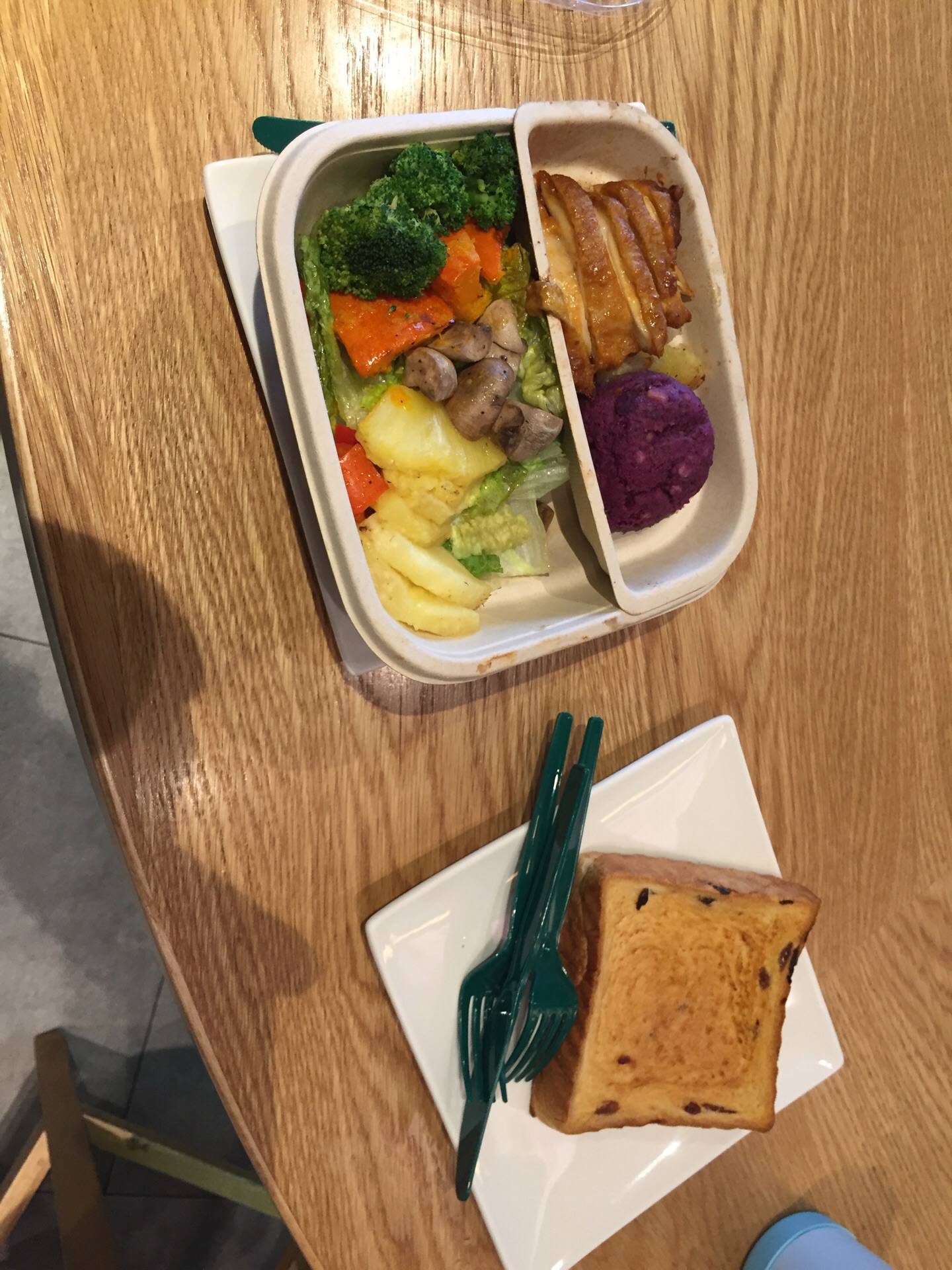 ...枪鱼三明治,鸡肉帕尼尼,还会各种点心,巧克力,蜂蜜提子等,鸡肉蔬菜沙拉等,都会换着吃,味道不错