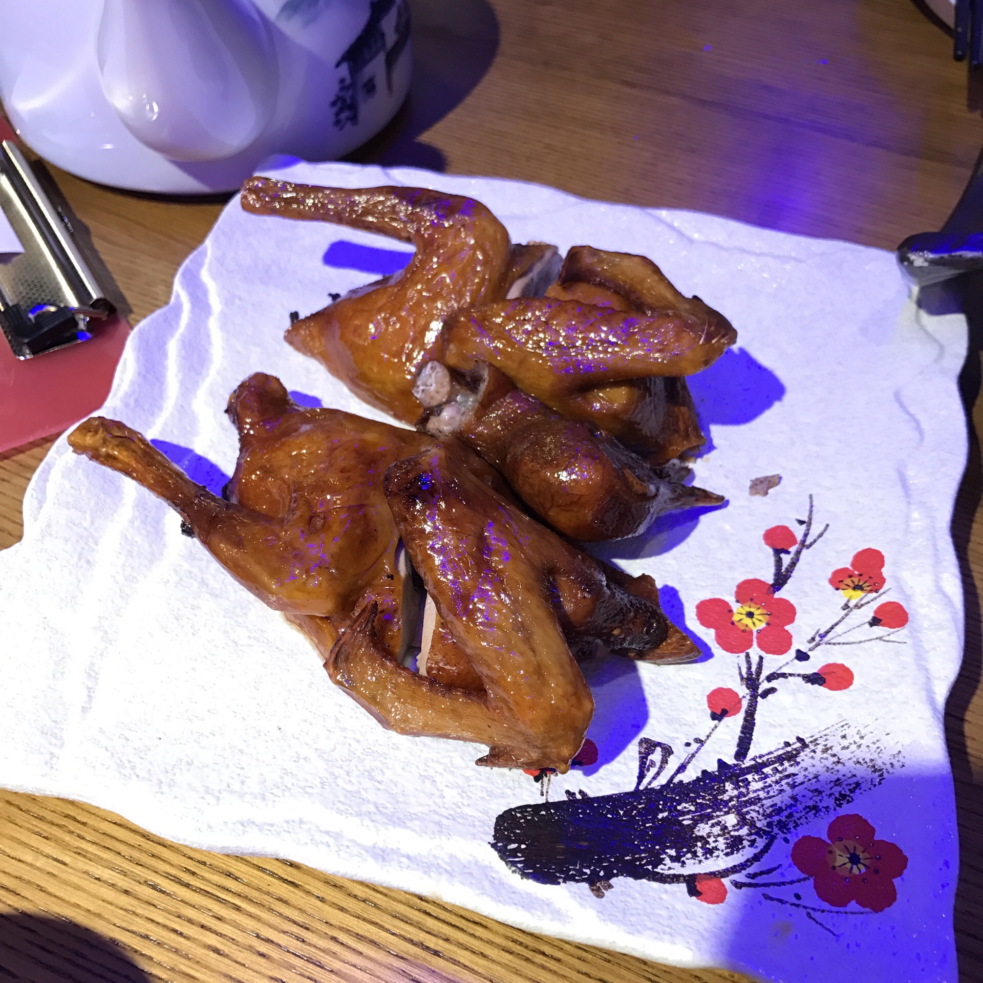 ⛳️开了一段时间,在动物园南门靠水荫路这边,人气很不错,所以六点半就开始等位了~ 竹子风格的中国风简约装修,以两人或四人座位居多,还算有点特色也舒适。 ༓༓༓༓༓༓༓༓ 『「盐焗鸽」』 盐焗风味的比传统的红烧乳鸽还要香口~ 外脆里嫩也够入味,很合本人口味! 『「红烧鸽」』 传统风味,新鲜出炉也算不错 不过可能有盐焗在先就感觉有点普通点~ 『「大鸽饭」』 一桌一个迷你电饭锅上 这的鸽肉比较淡,但配上饭也不错 热乎乎,跟煲仔饭的香口不一样 『「菜心炒鸽杂」』 鸽内脏炒菜心,对比鸡杂 更嫩更细腻,吃起来挺香 个人好这一口 服务员也很积极,虽然比较忙,但来来往往都能及时响应,味道有保证,不失为一个特色鸽料理的好去处