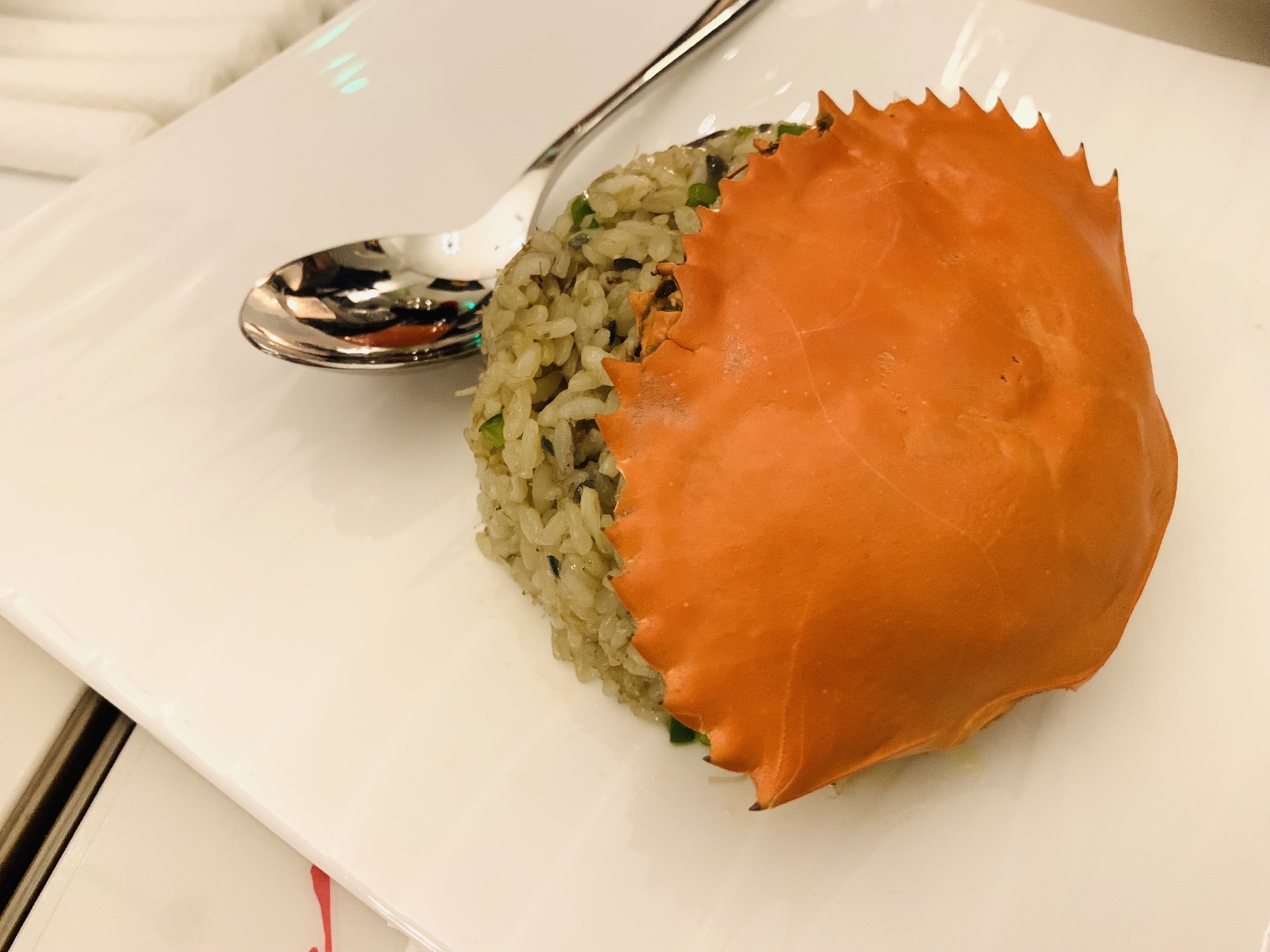特别是那憨态可掬的印有螃蟹️图案的黄油,涂满面包块,入口,要的就是这个味~ 日式蟹肉炒饭,圆形...