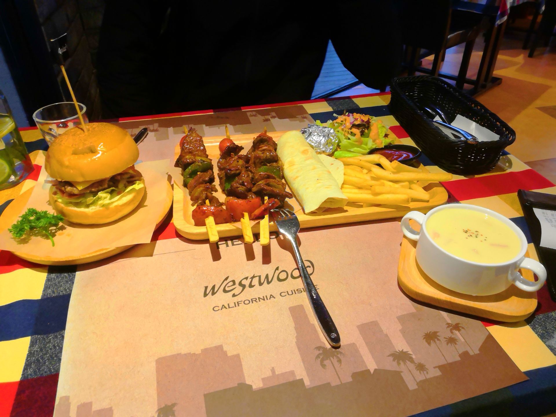 西木美式餐厅是我目前为止在厦门吃过的最好吃也是最实惠的一家西餐厅,西木在厦门有好几家分店,当时我去的是图书馆店,位置就在厦门图书馆旁。才刚到门口服务员就热情的招呼你入座倒水,餐厅装修也是浓浓的美式风格。我和女朋友两个人单点了一个汉堡,一份意面,再加上一份烤肉拼盘套餐;烤肉拼盘套餐可以自己选搭配套餐的主食或者浓汤,如果不想要汤的话还可以选饮料。人均50块钱就可以吃的很饱,如果想吃西餐的话西木会是一个非常不错的选择。