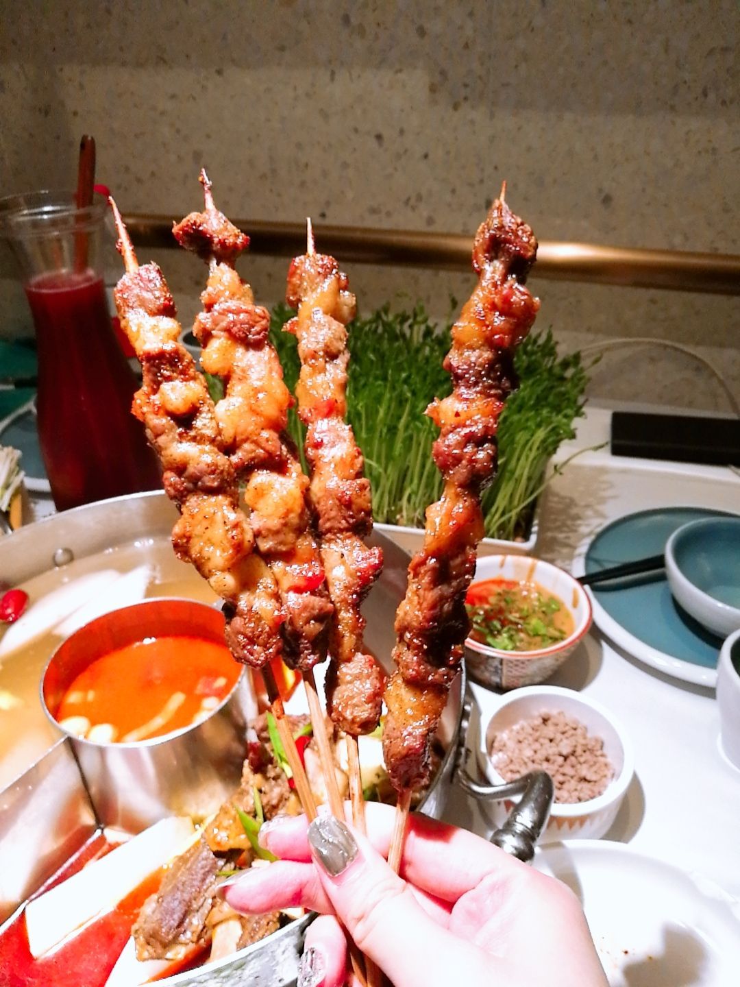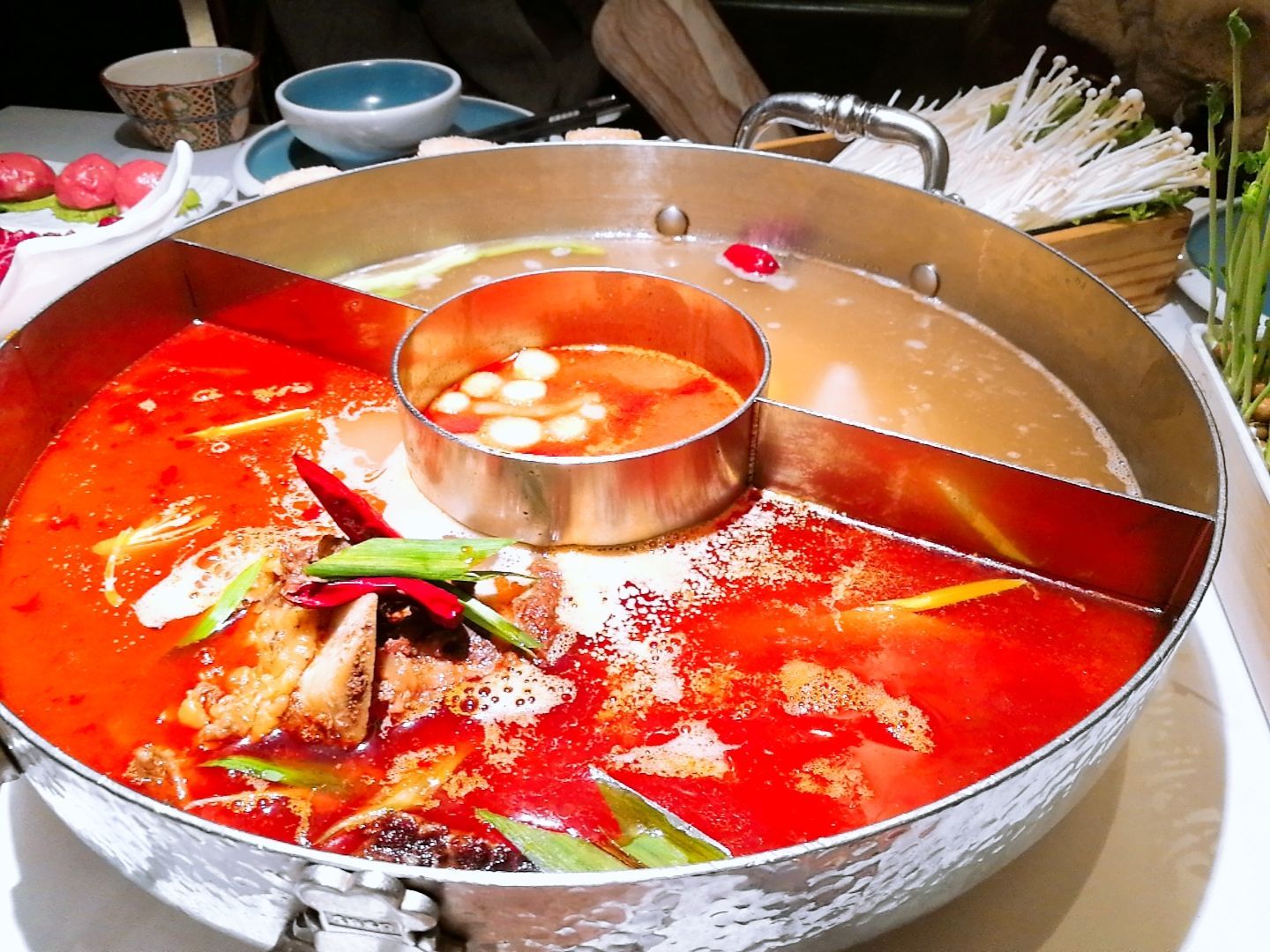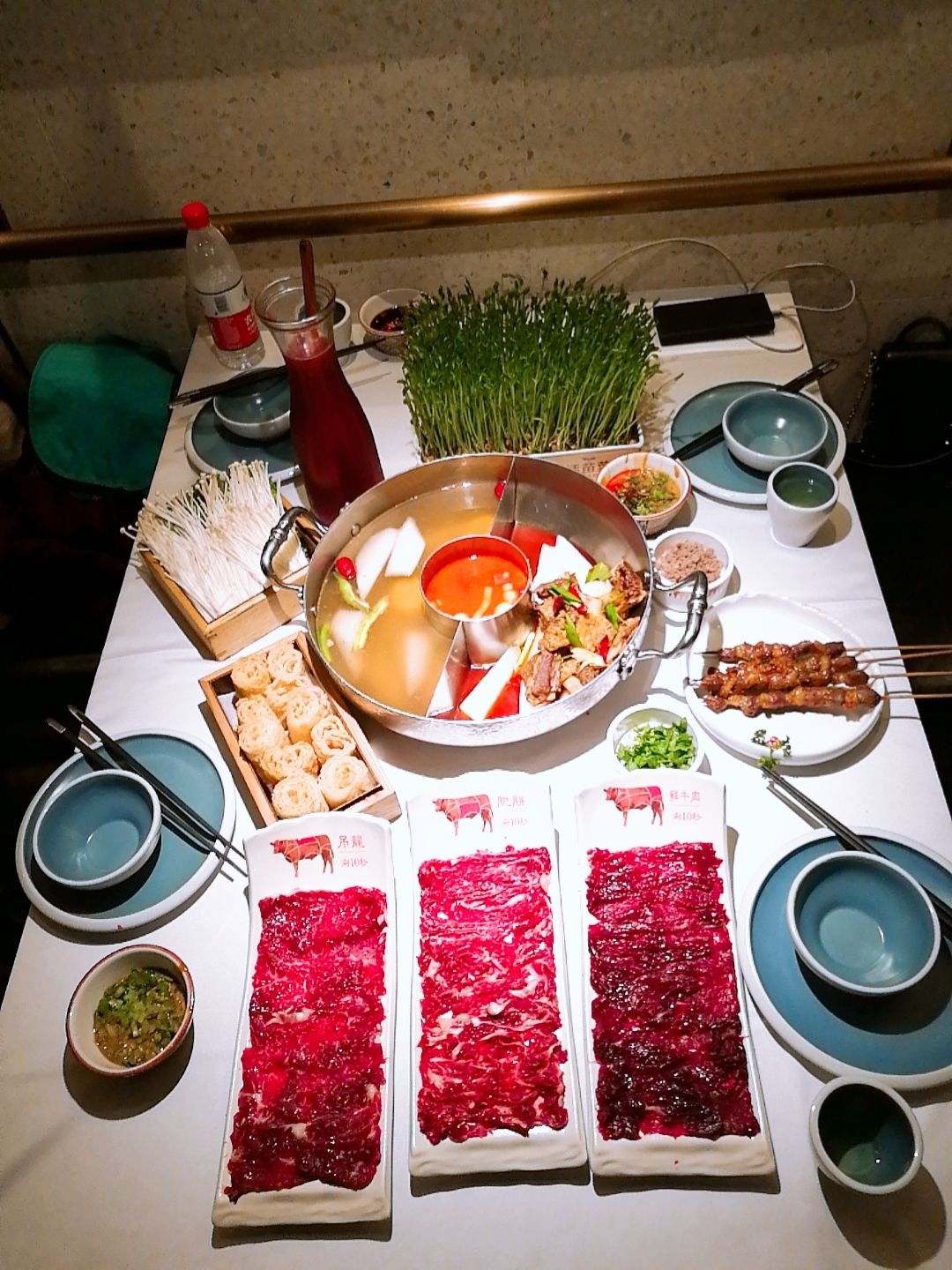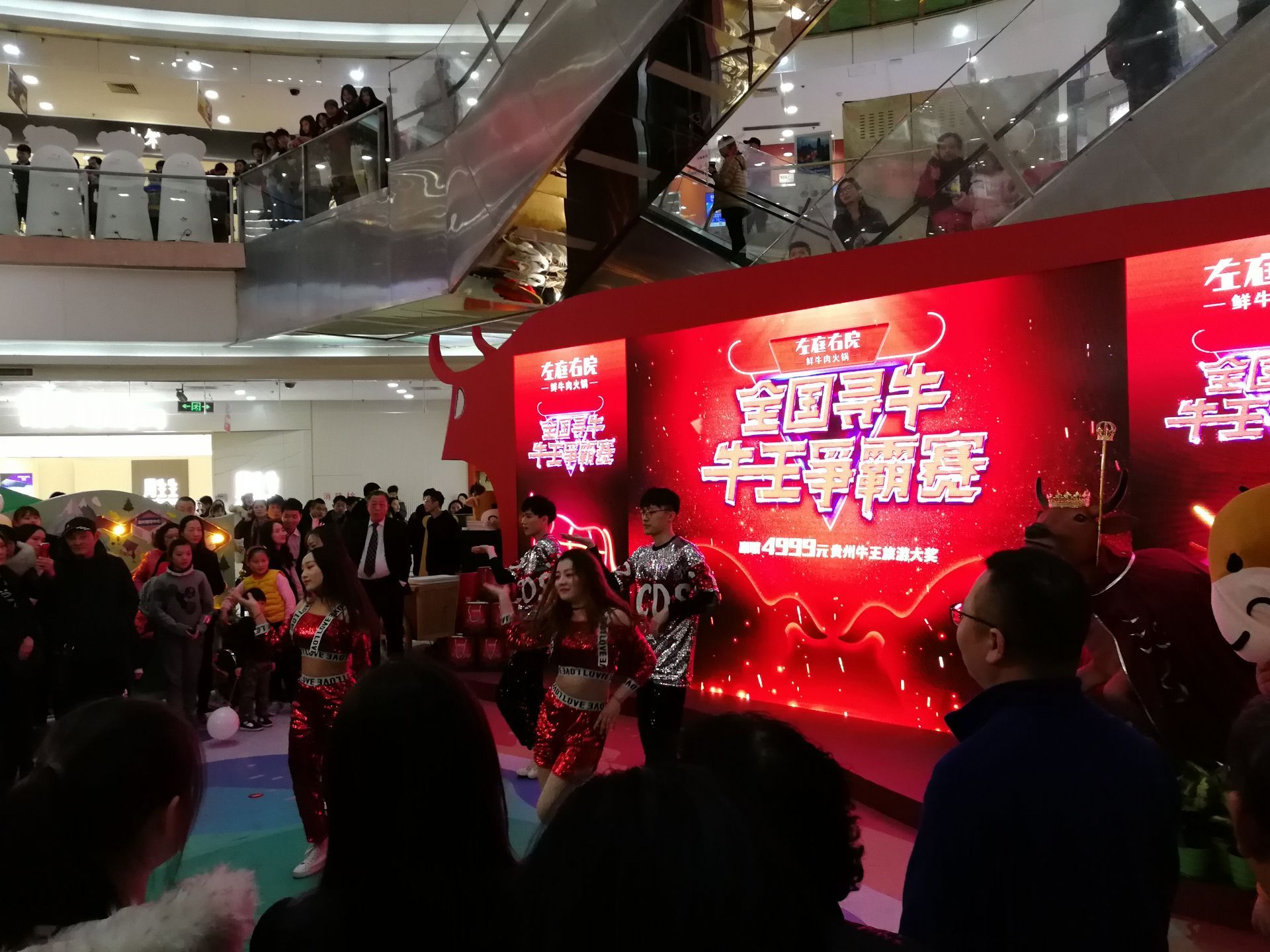 在中山公园玩,看到1楼在如火如荼地搞活动,一看是左庭右院在搞牛王争霸赛,现场非常热闹! 不仅有试吃,还有骑单车、转转盘以及体感游戏互动等等,参与互动送代金券,还可能赢取4999元贵州牛王旅游大奖! 小侠一直想去贵州玩玩呀,而且体感游戏很好玩的样子,立即报名参与!然后获得了小组第一,还有200元代金券,太给力了!但是在决赛中另一人获得了旅游大奖,不过也没关系,马上拉上好基友们去吃一顿左庭右院啦! 果然牛肉的品质很关键,难怪这么多人愿意排队品尝! ★锅底:香酥牛排+牛骨原汤+牛骨番茄汤 牛排真的好大几块,啃着骨头也开心。番茄汤底特别浓郁,而且还附赠了牛肉粒和香菜,最后我们把这些倒入番茄锅中,一碗浓郁的牛肉番茄汤就诞生啦! ★鲜牛肉、肥胼和吊龙 真是款款我的爱,每一款都不容错过!肉质鲜嫩,锅中稍微放置几秒就熟了,捞出来送入口中,惊艳味觉! ★鲜牛肉丸 真是Q弹有嚼劲,绝对是左庭右院的特色! 还有牛肉串、香炸腐皮、活体豌豆苗、杨梅汁等等,都是火锅必点哟!!