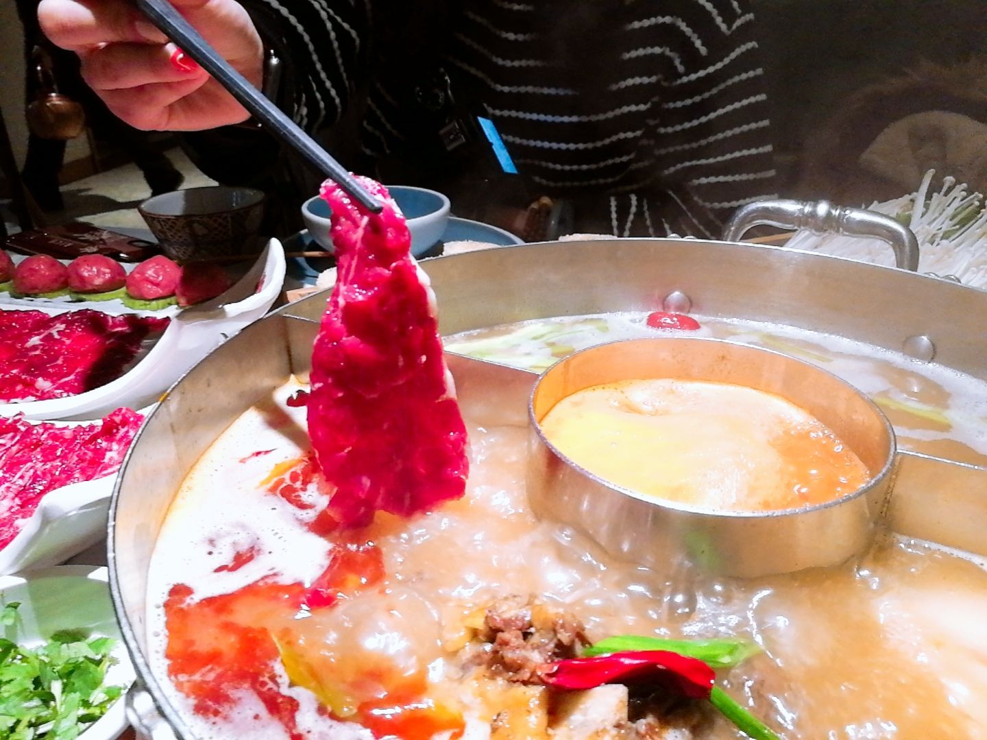 肉质鲜嫩,锅中稍微放置几秒就熟了,捞出来送入口中,惊艳味觉