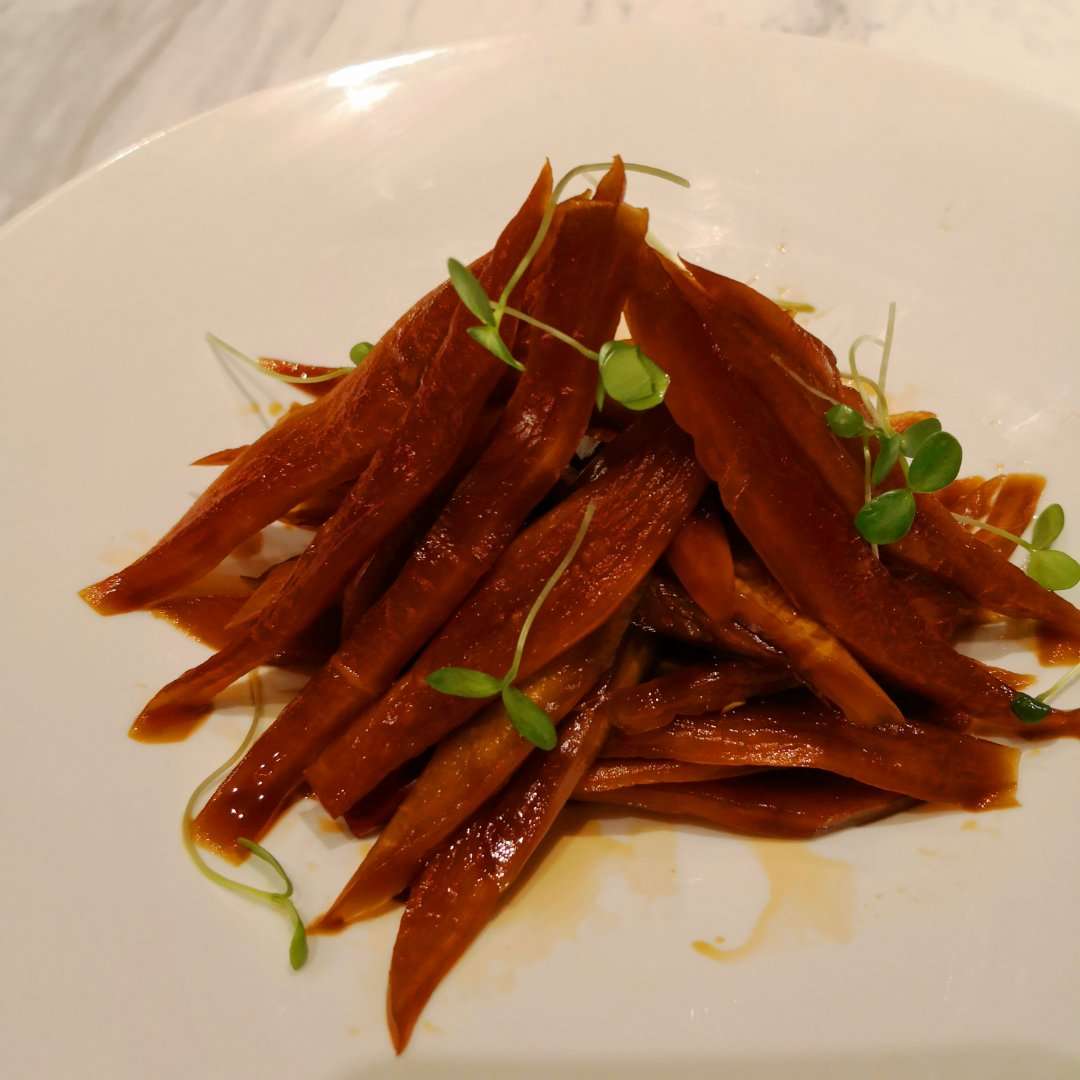 这家餐厅首先环境就是一流,陈设非常养眼,还有就是餐具也非常典雅,几乎是一菜一盘。菜品也一样,菜量不大,摆盘有格调。吃起来也不错。