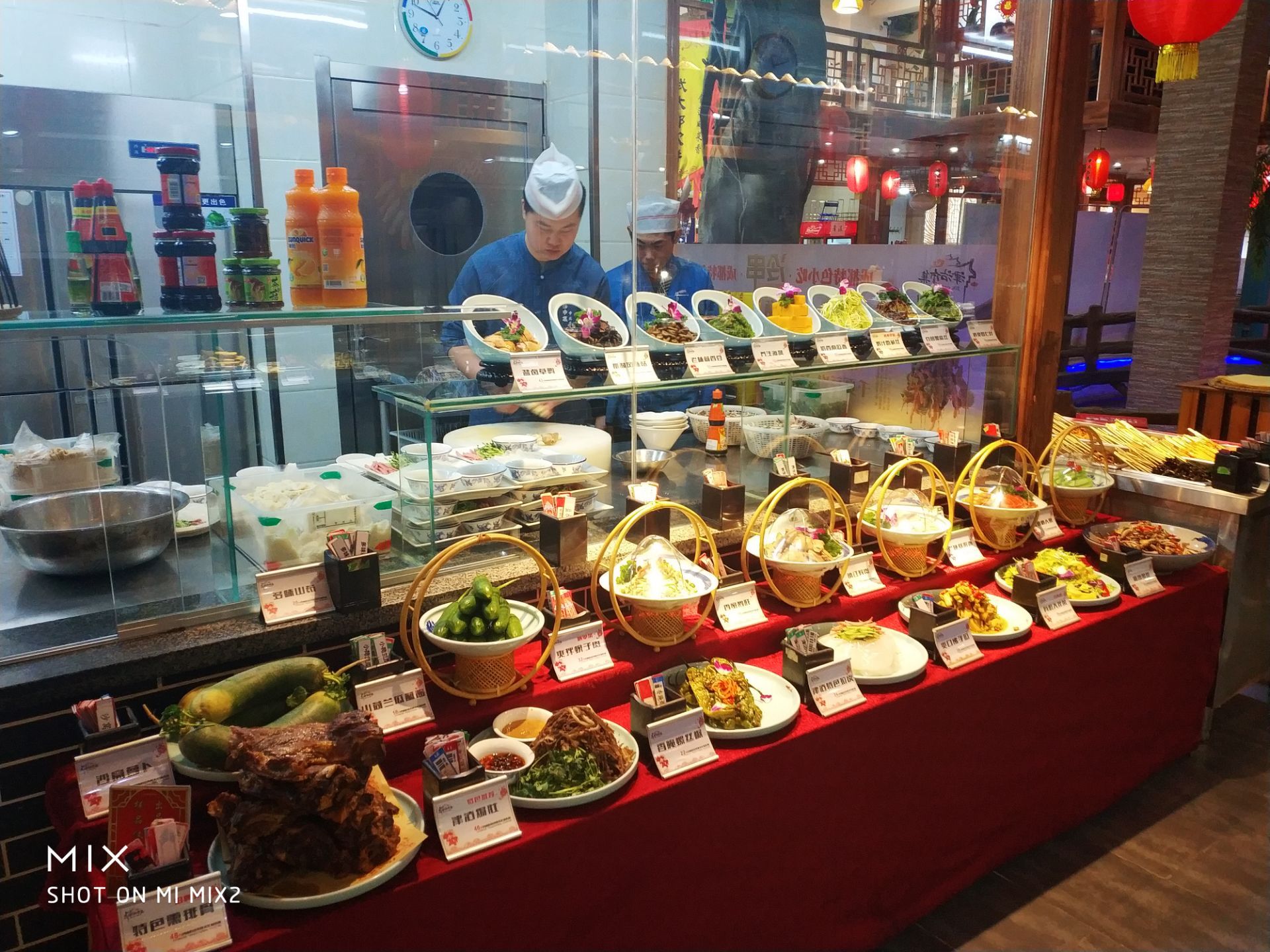 菜品摆放整齐直观,不少特色都是现场制作,让人充满食欲。菜品都是取牌点餐,比较另类好玩