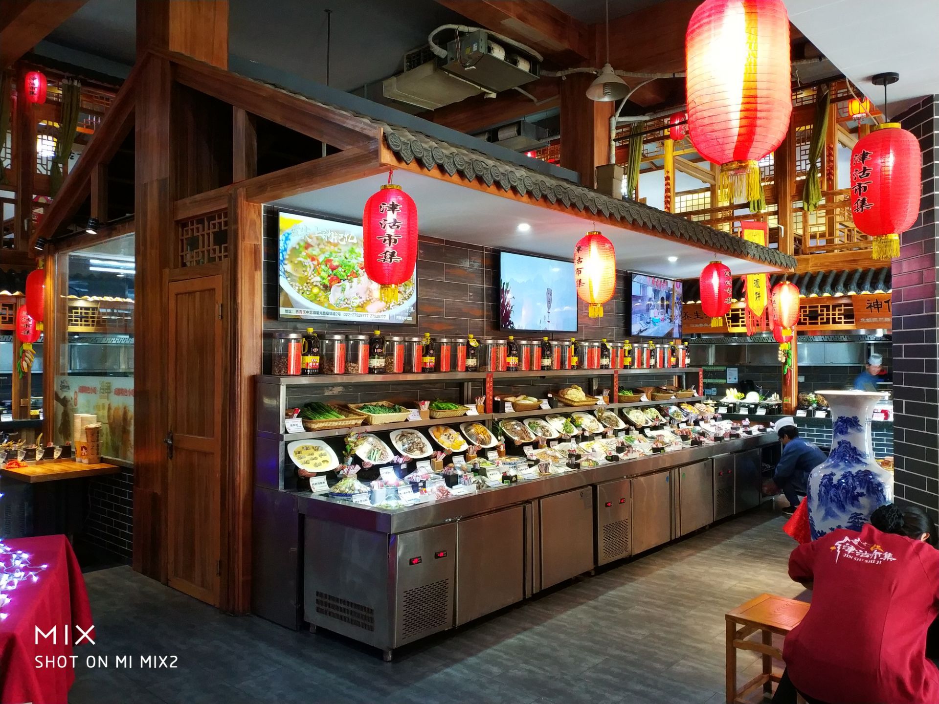 还算不错的一家天津风味餐厅,内部装潢讲究,充满市井气息。菜品摆放整齐直观,不少特色都是现场制作,让人充满食欲。里面不少都是天津本地家常菜,口感味道算是比较地道,菜量足够大,看着很实惠。小桥流水和木质屏风回廊都很有海河人家的味道。菜品都是取牌点餐,比较另类好玩。门口及旁边空间场地足够大,很适合开车自驾前来。总之体验感觉上是不错的一家风味餐厅,值得前来光顾!